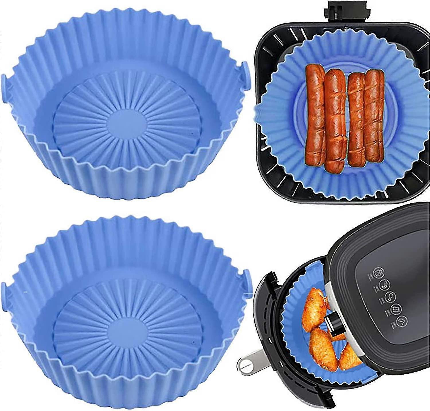 Air Fryer Silicone Pot Reusable Air Fryer Liners For Baking Roasting Oven Microwave(6.3 Inch, 2 X Blue)