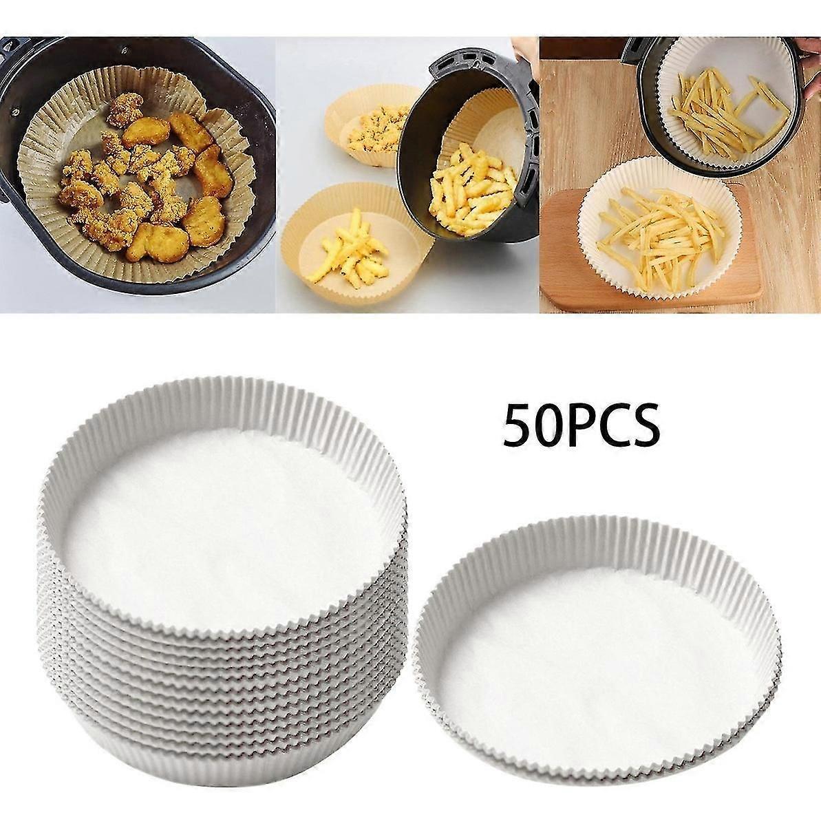 Disposable heat-resistant baking parchment paper for cooking Raw wood pulp material, vegetable silicone oil, food grade, eco-friendly, high fiber density, blasting and boiling, non-stick, fluorescent agent, heat-resistant (30-230C) It keeps your fryer clean and saves time and effort. 50 liners for your everyday cooking, baking and changing needs Offers a wide range of options. Specifications: Material: Paper (original wood pulp) Dimensions: 16x5cm/6.30x1.97inch Package includes: 50 Air Fryer Disposable Paper Liners