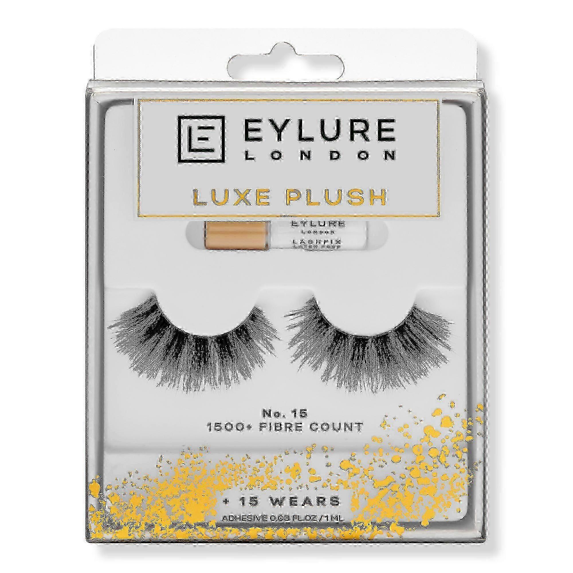 The Eylure Luxe Plush No.15 is a darkly beautiful style that is packed with gorgeous wispy layers for the perfect eye-opening lash look.BenefitsOne of the finest, cruelty-free lash collections availableCreated with the finest mink-effect, cruelty free fibresEach pair contains 1000+ individually placed mink-effect fibresExtreme softness+15 wears per pairEach pack includes an applicator and glueA Luxurious and weightless lash collectionAbsolute lash luxury Inactive Ingredients: Cetearyl Ethylhexanoate, C12-20 Acid Peg-8 Ester, Glycerin, Hdi/Trimethylol Hexyllactone Crosspolymer, Squalane, Caprylyl Glycol, Polysorbate 80, Ethylhexylglycerin, 1,2-Hexanediol, Tin Oxide, Calcium Chloride, Chondrus Crispus Extract, Xanthan Gum, Pentaerythrityl Tetra-Di-T-Butyl Hydroxyhydrocinnamate, Talc, Silica, Dicalcium Phosphate, Synthetic Fluorphlogopite, [+ / - (May Contain), CI 75470 (Carmine), CI 77000 (Aluminum Powder), CI 77007 (Ultramarines), CI 77163 (Bismuth Oxychloride), CI 77288 (Chromium Oxide Greens), CI 77491, CI 77492, CI 77499 (Iron Oxides), CI 77510 (Ferric Ammonium Ferrocyanide), CI 77510 (Ferric Ferrocyanide), CI 77742 (Manganese Violet), CI 77891 (Titanium Dioxide), Mica], IL39A-I. Triethylhexanoin, Zinc Stearate, Silica, Hydrogenated Polyisobutene, Octyldodecanol, Talc, Caprylyl Glycol, Ethylhexylglycerin, Synthetic Fluorphlogopite, Methylparaben, Polyisoprene, Ethylene/Propylene/Styrene Copolymer, Propylparaben, Butylene/Ethylene/Styrene Copolymer, Bht, [+ / - (May Contain), CI 75470 (Carmine), CI 77000 (Aluminum Powder), CI 77007 (Ultramarines), CI 77163 (Bismuth Oxychloride), CI 77288 (Chromium Oxide Greens), CI 77491, CI 77492, CI 77499 (Iron Oxides), CI 77510 (Ferric Ammonium Ferrocyanide), CI 77510 (Ferric Ferrocyanide), CI 77742 (Manganese Violet), CI 77891 (Titanium Dioxide), Mica], IL39A-II. Talc, Octyldodecyl Stearoyl Stearate, Zinc Stearate, Phenyl Trimethicone, Octyldodecanol, Squalane, Triethylhexanoin, Silica, Nylon-12, Dimethicone, Caprylyl Glycol, Ethylhexylglycerin, Methylparaben, Polyisoprene, Propylparaben, Tin Oxide, Bht, [+ / - (May Contain), CI 19140 (Yellow 5 Lake), CI 75470 (Carmine), CI 77000 (Aluminum Powder), CI 77007 (Ultramarines), CI 77163 (Bismuth Oxychloride), CI 77288 (Chromium Oxide Greens), CI 77400 (Bronze Powder), CI 77400 (Copper Powder), CI 77491, CI 77492, CI 77499 (Iron Oxides), CI 77510 (Ferric Ammonium Ferrocyanide), CI 77510 (Ferric Ferrocyanide), CI 77742 (Manganese Violet), CI 77891 (Titanium Dioxide), Mica], IL39A-III. Suggested Use: Precautions: False eyelashes with adhesive, latex free. Warning: In case of eye contact, wash out the eye thoroughly with plenty of clean water. If irritation or redness persists seek medical attention.
