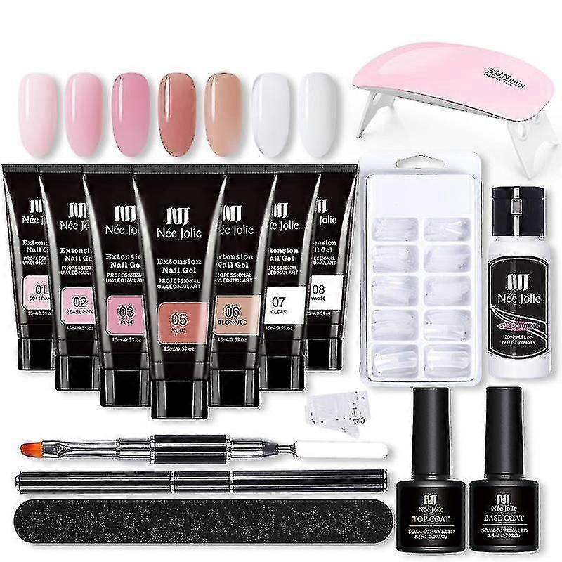 Extension Gel Nail Kit - Nail Enhancement Gel 7 Colors Pink Nude All In One Kit With Nail Lamp