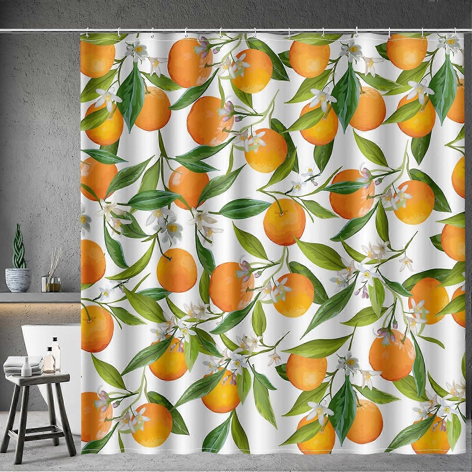 Extra Long Shower Curtain - Orange Yellow Fruit Green Leaves Floral Modern Summer Fresh Nature Rustic Fabric Cloth Shower Curtain Set with 12 Hooks fo