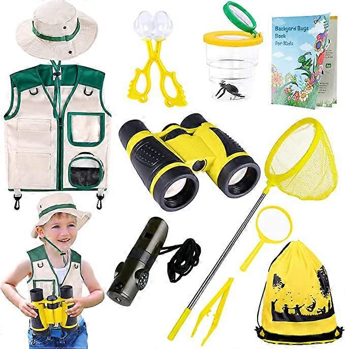 Explorer Kit and Insect Trap Kit for Kids Outdoor Adventure with Vest, Hat, Binoculars, Retractable Butterfly Net and Insect Book for Boys & Girls 3-1