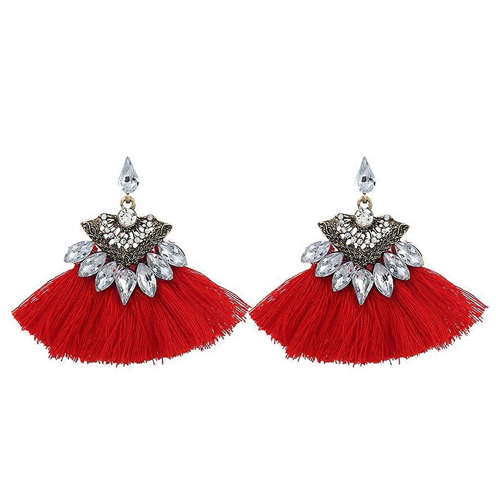 Ethnic Dangle Earrings Boho Statement Earrings Red Metal Glass Crystals Daily Party Dating Banquet 1Pair