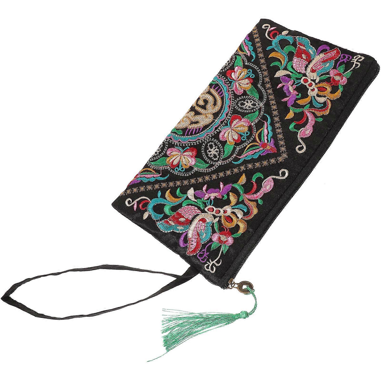 Ladies' Crossbody Handbag with Ethnic Embroidery – Small Tote Purse for Women with Wristband, Fits Mobile Phone