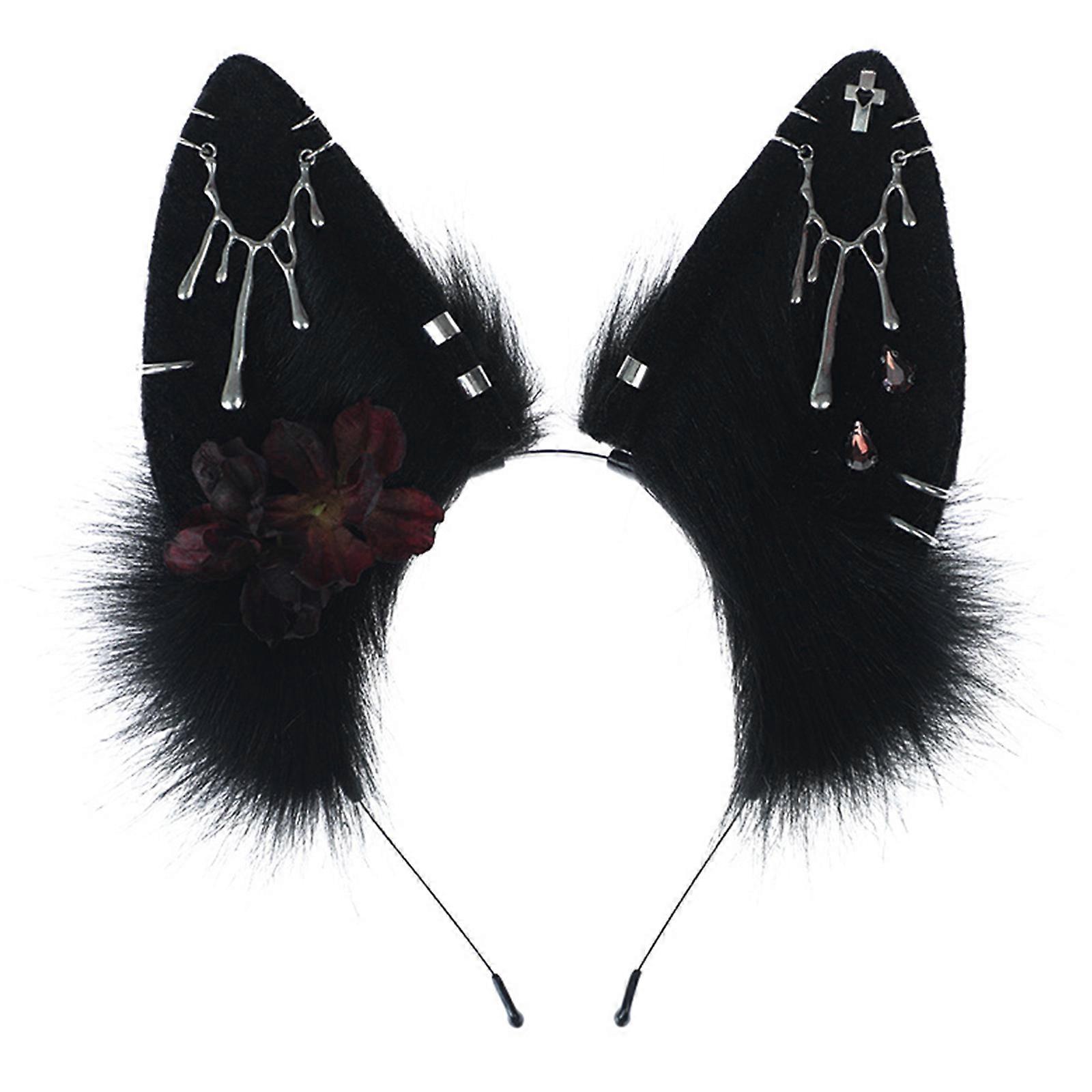 Ethnic Animal Ear Headband Plush Anime Headband Masquerade Costume Headdress Female Teens Cosplay Dress Up Accessories Black