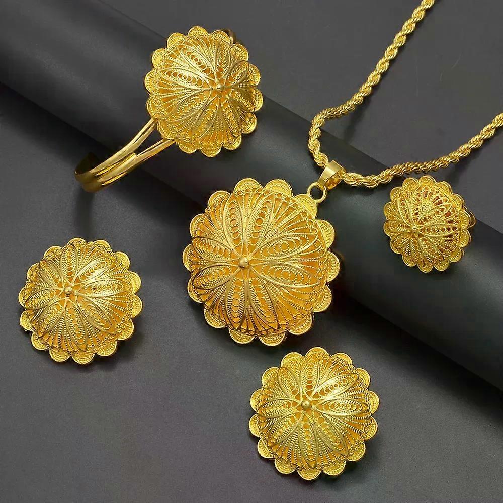 Ethiopian Jewelry sets Necklace Earrings Bracelet Ring for Women Girls Eritrean African Engagement Gift 173616