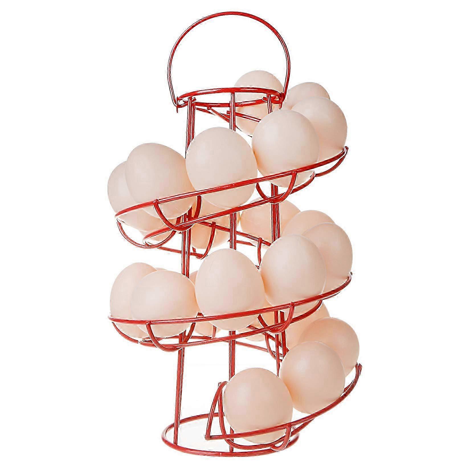Egg Skelter Deluxe Spiral Dispenser - Wire Egg Storage Rack for Kitchen Countertop Red
