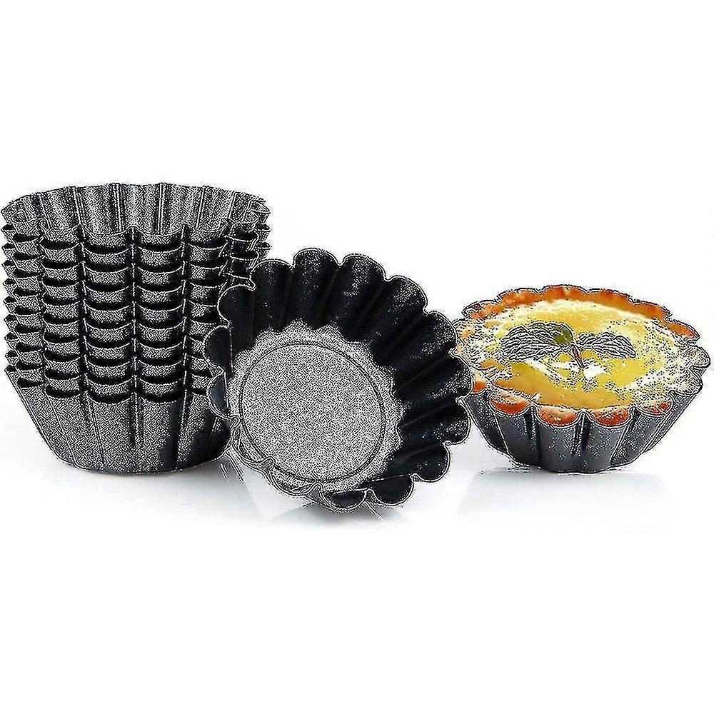 Egg Tart Pans, 12 Pcs Stainless Steel Egg Tart Pans, Reusable Carbon Steel Cake Pans, Biscuit Baking Pan XXF