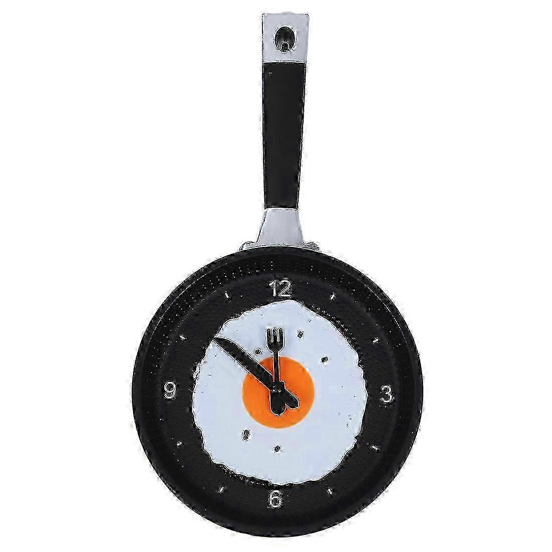 Egg Frying Pan Clock - Hanging Kitchen Decor Cafe Wall Clock, Unique Green Clock Design