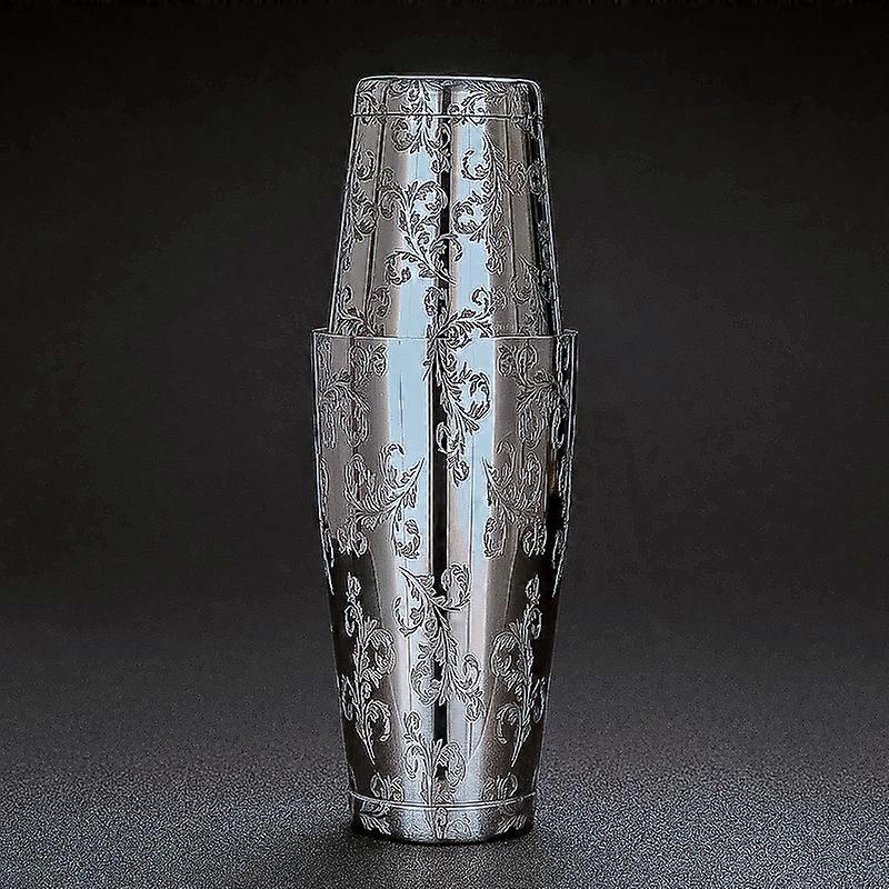 Set of stainless steel Boston Shakers with etched pattern and weighted shaker drums (sheet black)