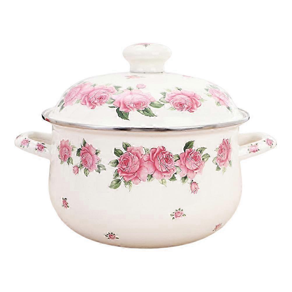 Enamel Stew Pot 22x22cm Practical Cooking Soup Pot Flat Bottom Stock Pot