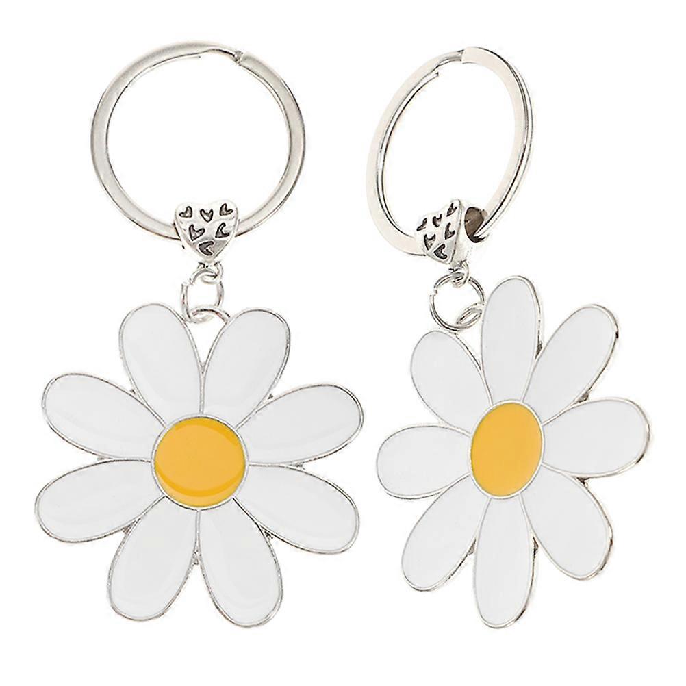 Enamel Floral Key Chain Metal Daisy Keyring Flower Shape Bag Accessories White Color 8.50X4.80X1.00CM Key Organizer 2Pcs