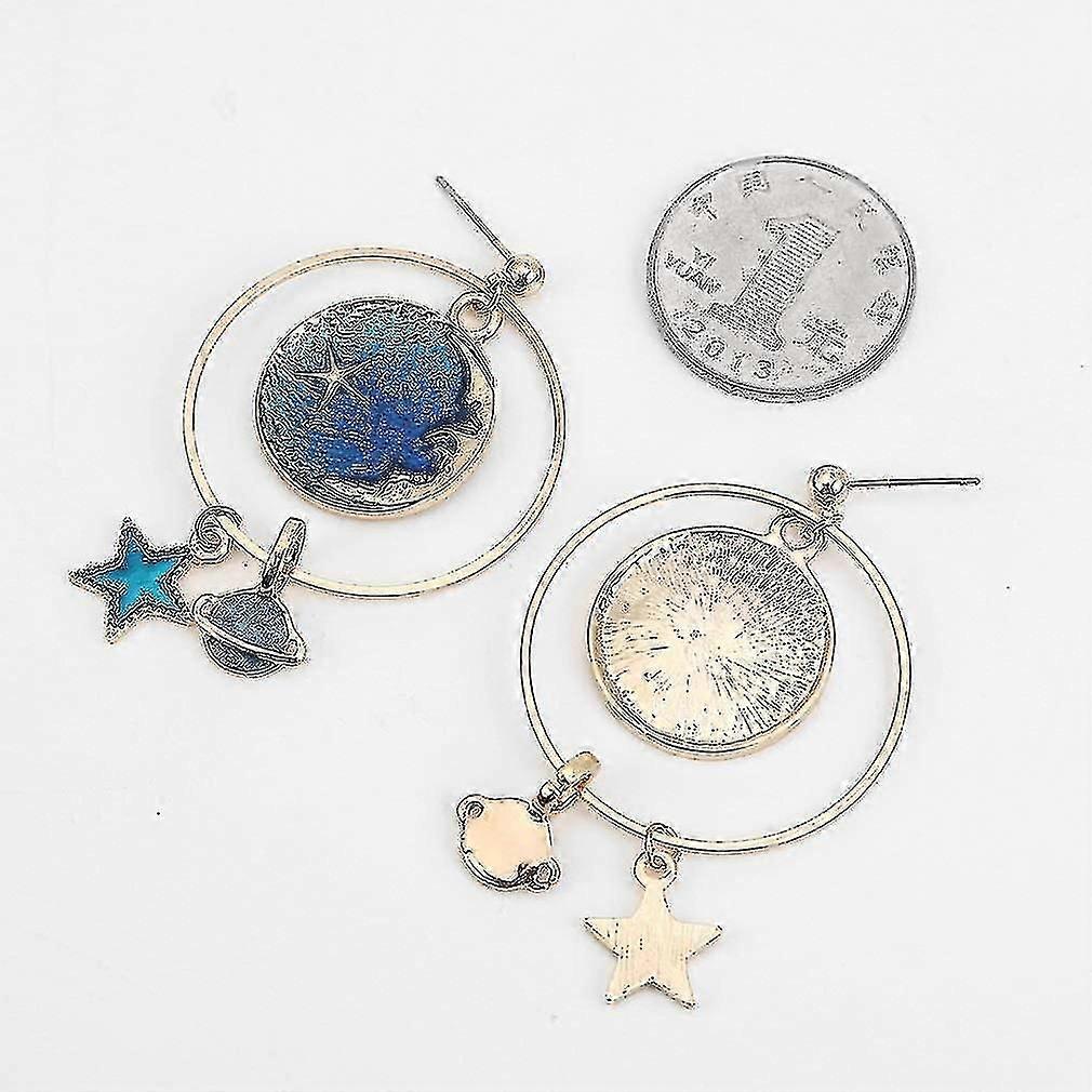 Enamel Moon Star Earth Planet Drop Hook Earrings Long Pendant Dangle Jewelry For Woman Girls