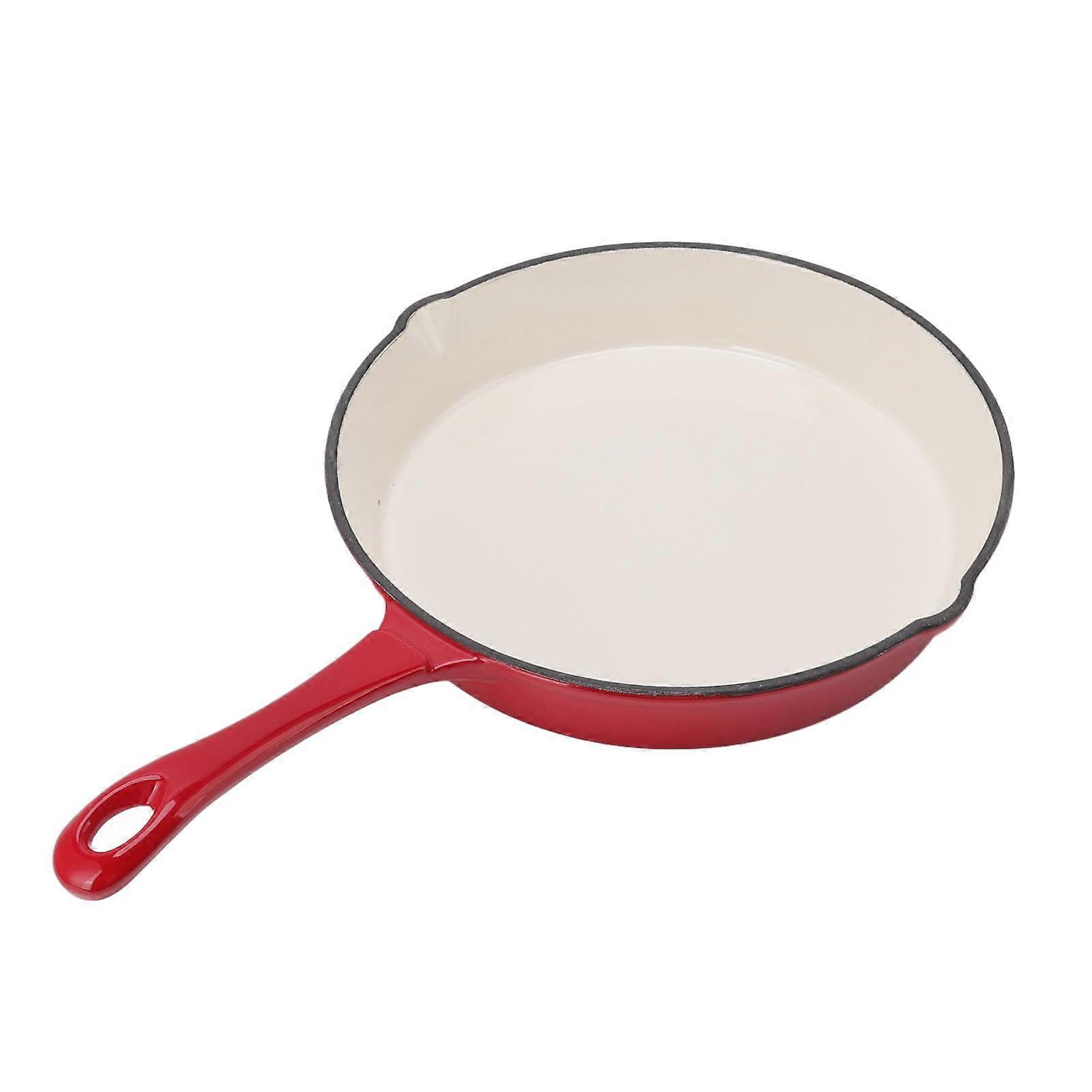 Enameled Cast Iron Skillet One Piece Long Handle Red 25cm Diameter Ergonomic Design Kitchen Frying Skillet for Cooking