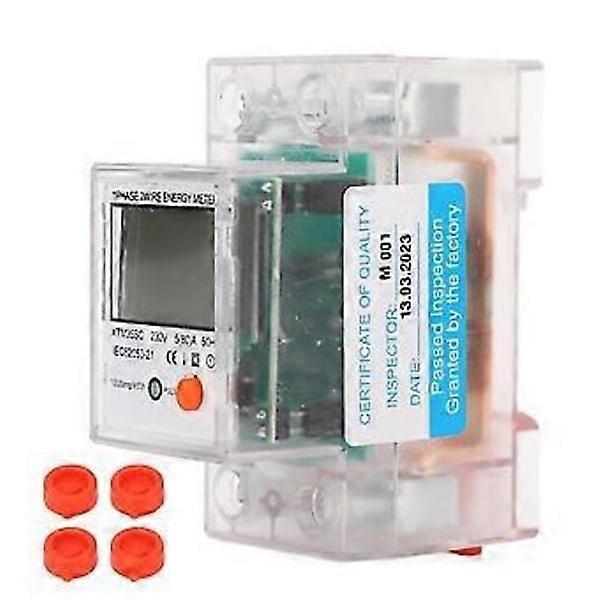 Energy Meter 2P Single Phase DIN Rail Electric Consumption Meter Backlit LCD Display Power Meter 230V