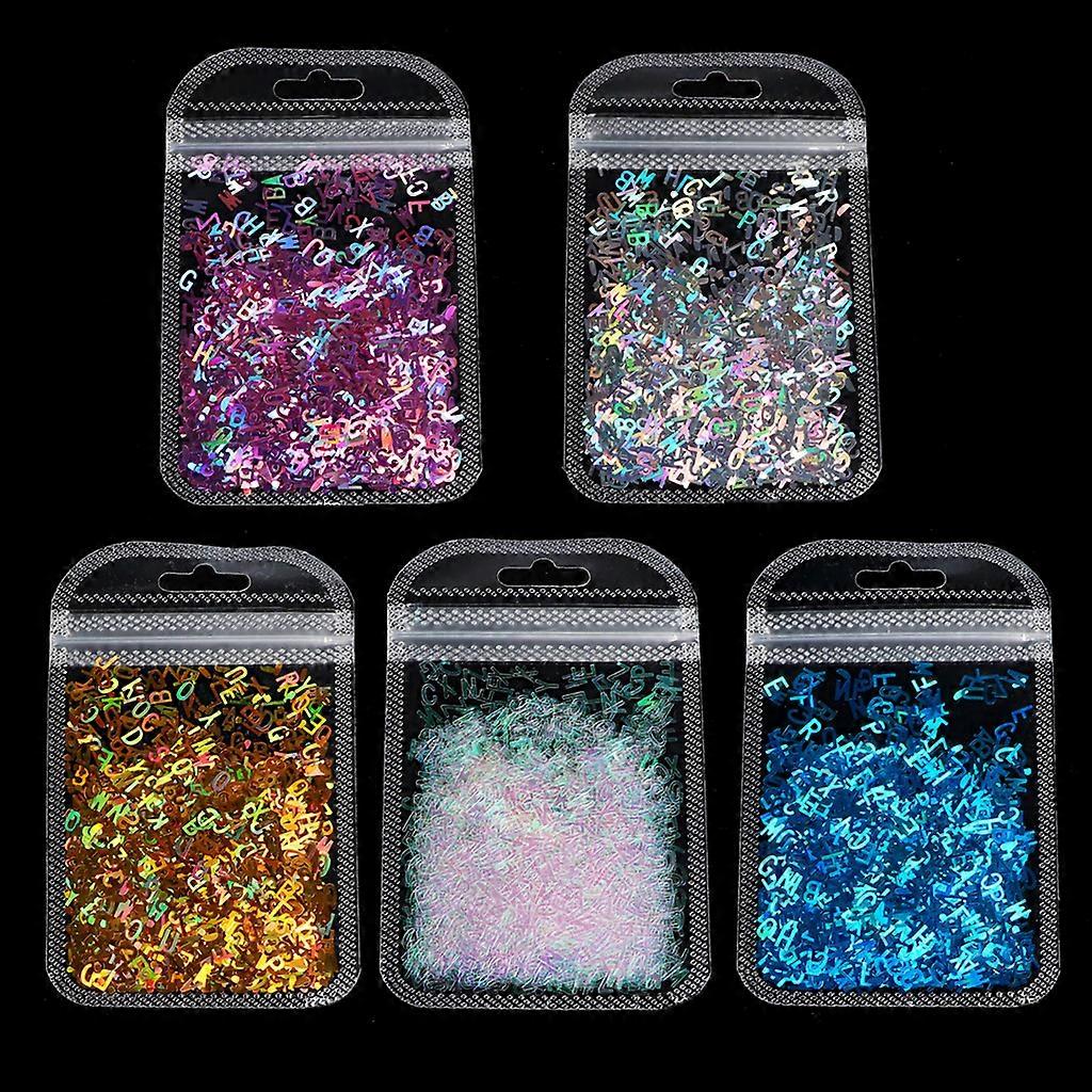 5 Colors Alphabet Glitter for Epoxy Resin Holographic Chunky Letter Sequins Flakes Nail Arts Decor Supply for DIY Crafts