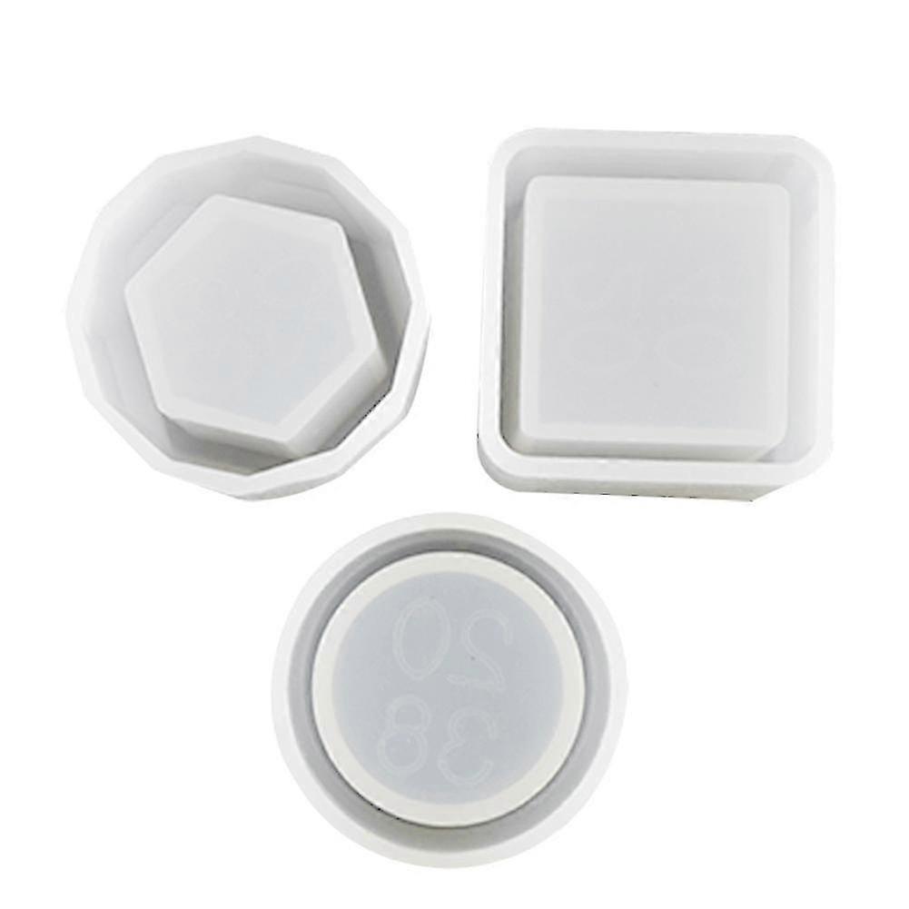 3pcs Silicone Molds for Epoxy Resin - Square Round Hexagonal Flowerpot DIY