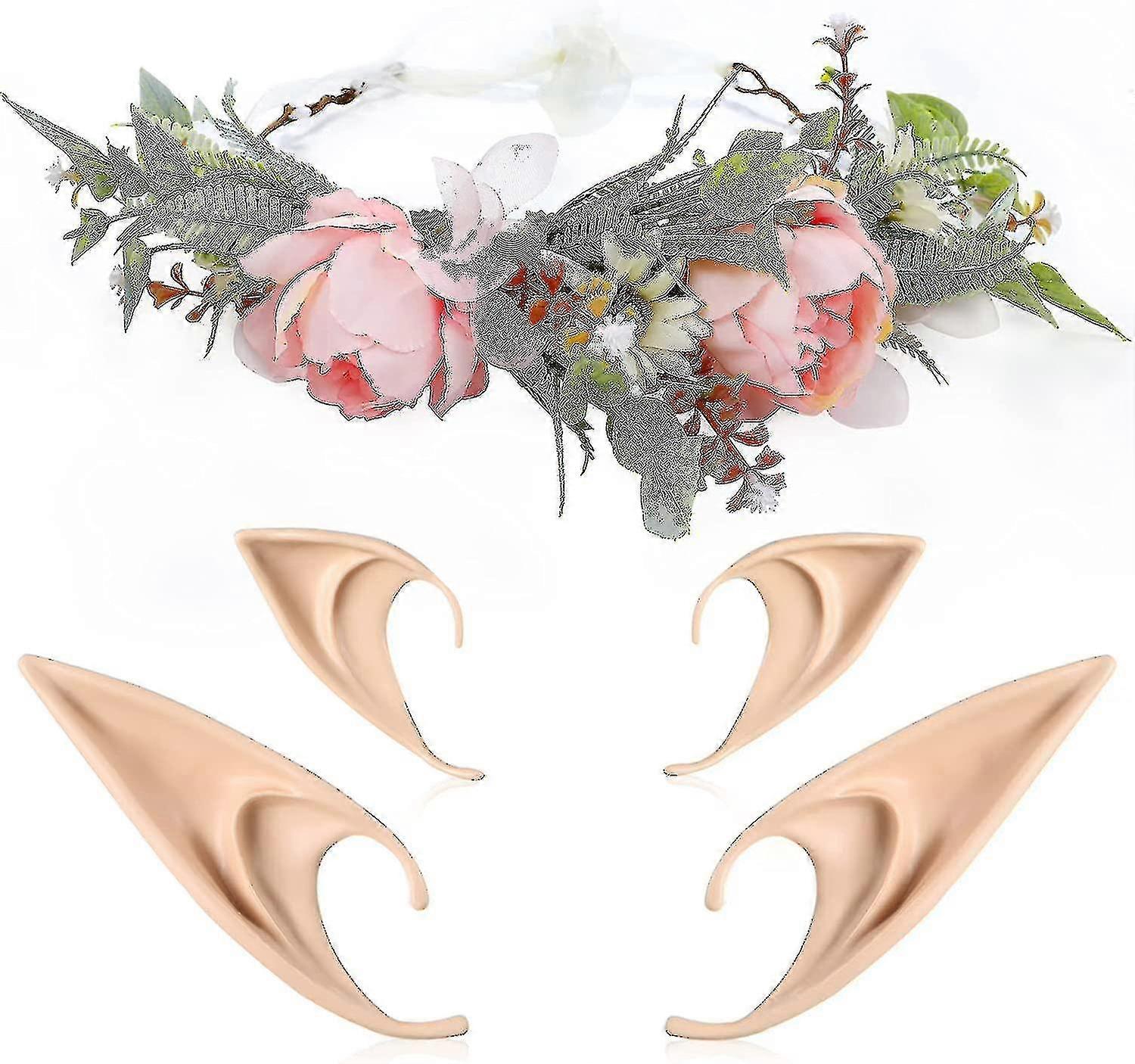 2 Pairs Elf Ears - Medium And Long Style Cosplay Fairy Pixie Elf Ears Soft Pointed Ears Tips Anime Party Dress Up Costume Masquerade Accessories Hallo