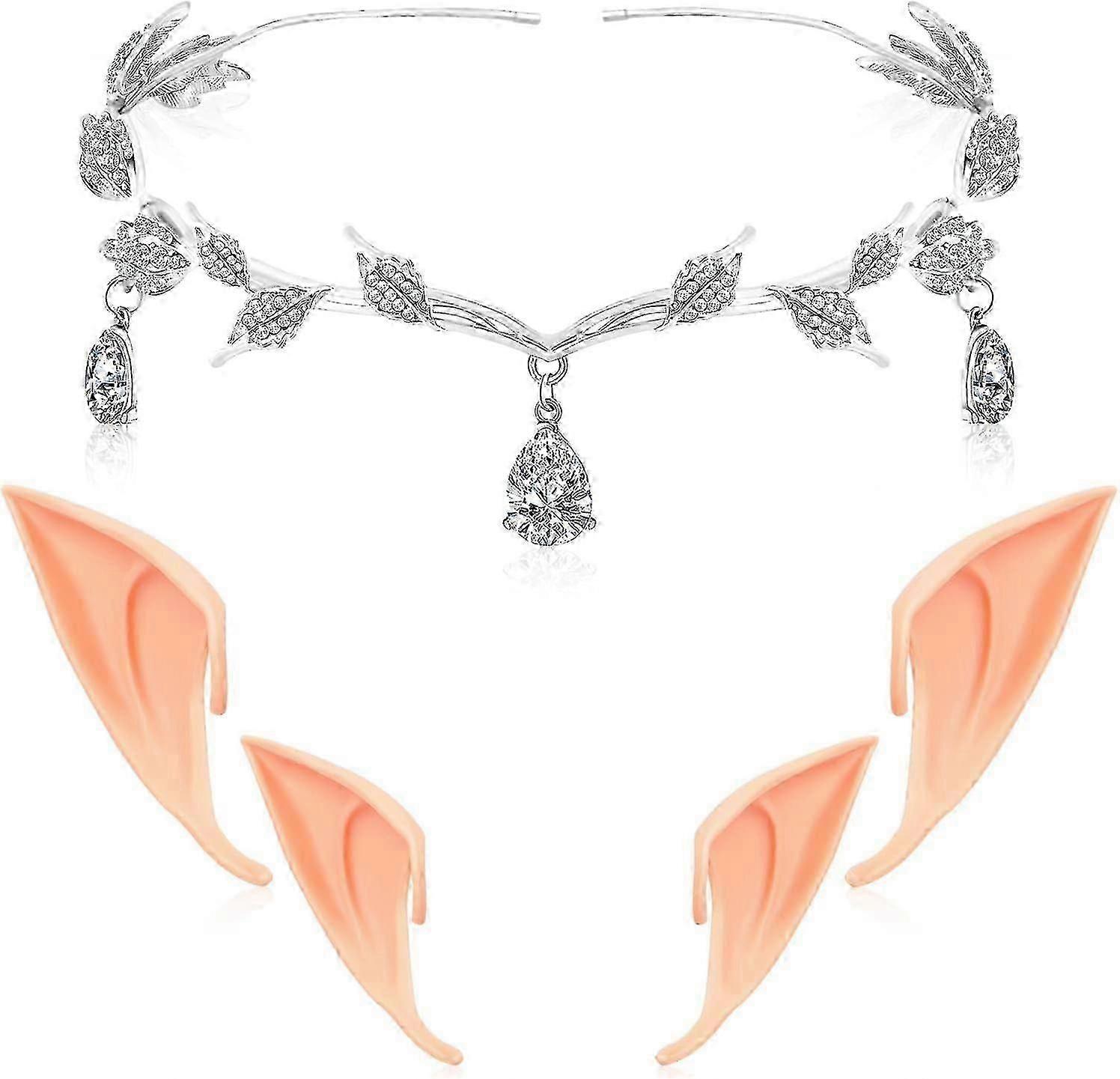 Elf Tiara And Ears Set Crystal Princess Crown Tiara For Women Wedding Party Fairy Elf Ears Cosplay Halloween SZRH A-F