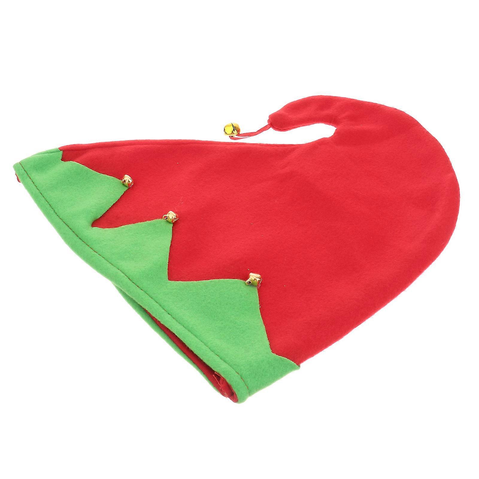 Elf Dress Up Hat Curved Top Jingle Bells Christmas Party Clown Hat 30x33x0.5cm Non-woven Fabric 1Set