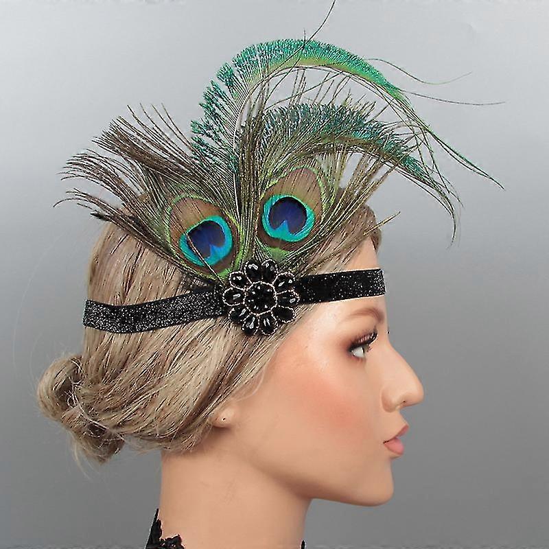 Elegant Vintage Style Women Peacock Feather Headband Diamond Hairband Hair Ring Party