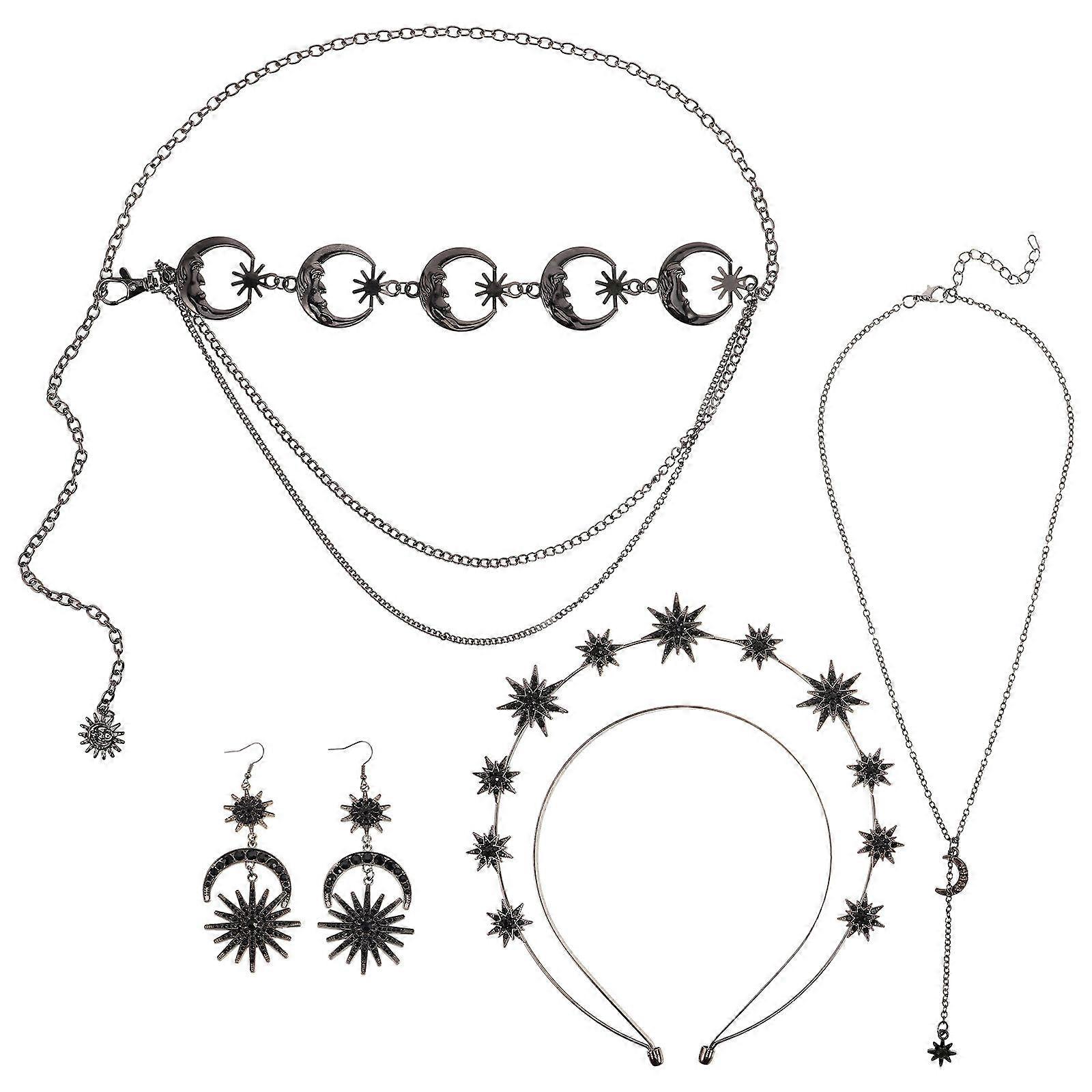 Elegant Vintage Star Moon Headband and Earrings Jewelry Set for Party 4Sets