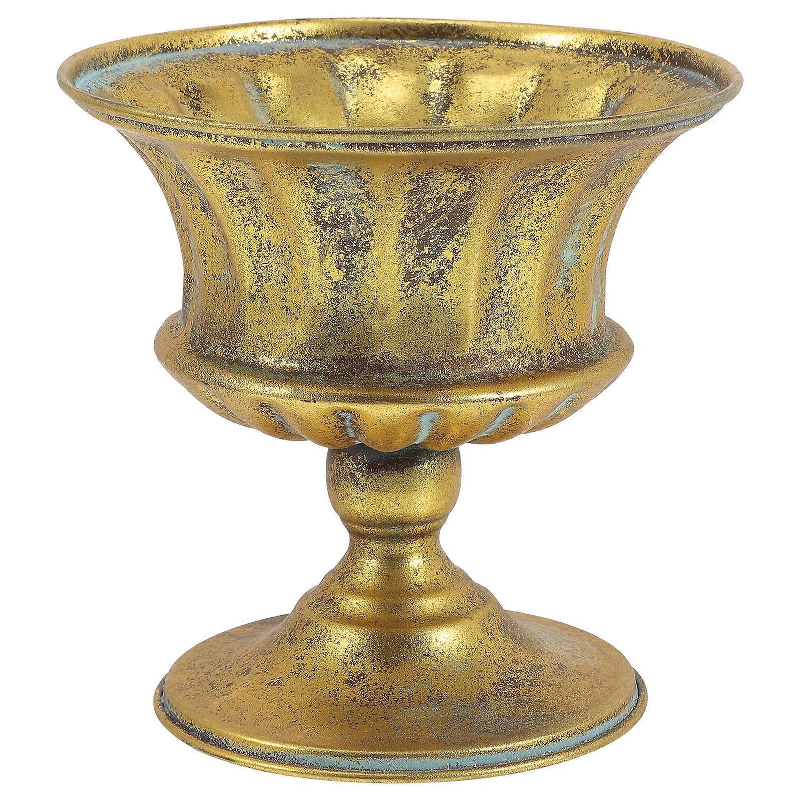 Elegant Vintage Iron Urn Planter Durable Succulent Pot Compact Design Outdoor Garden Decor for Cactus Plants Patios Front Yards Pathways