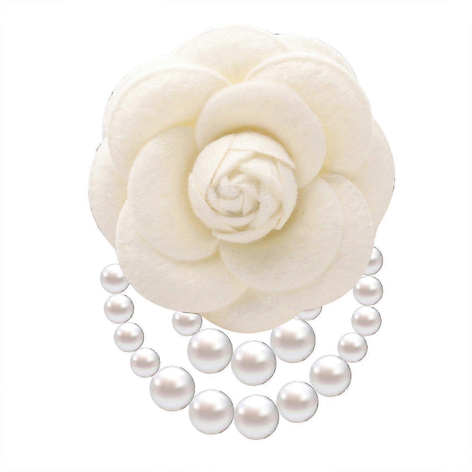 Elegant Camellia Pearl Brooch with Bohemian Fabric Flower & Pearl Tassel for Women