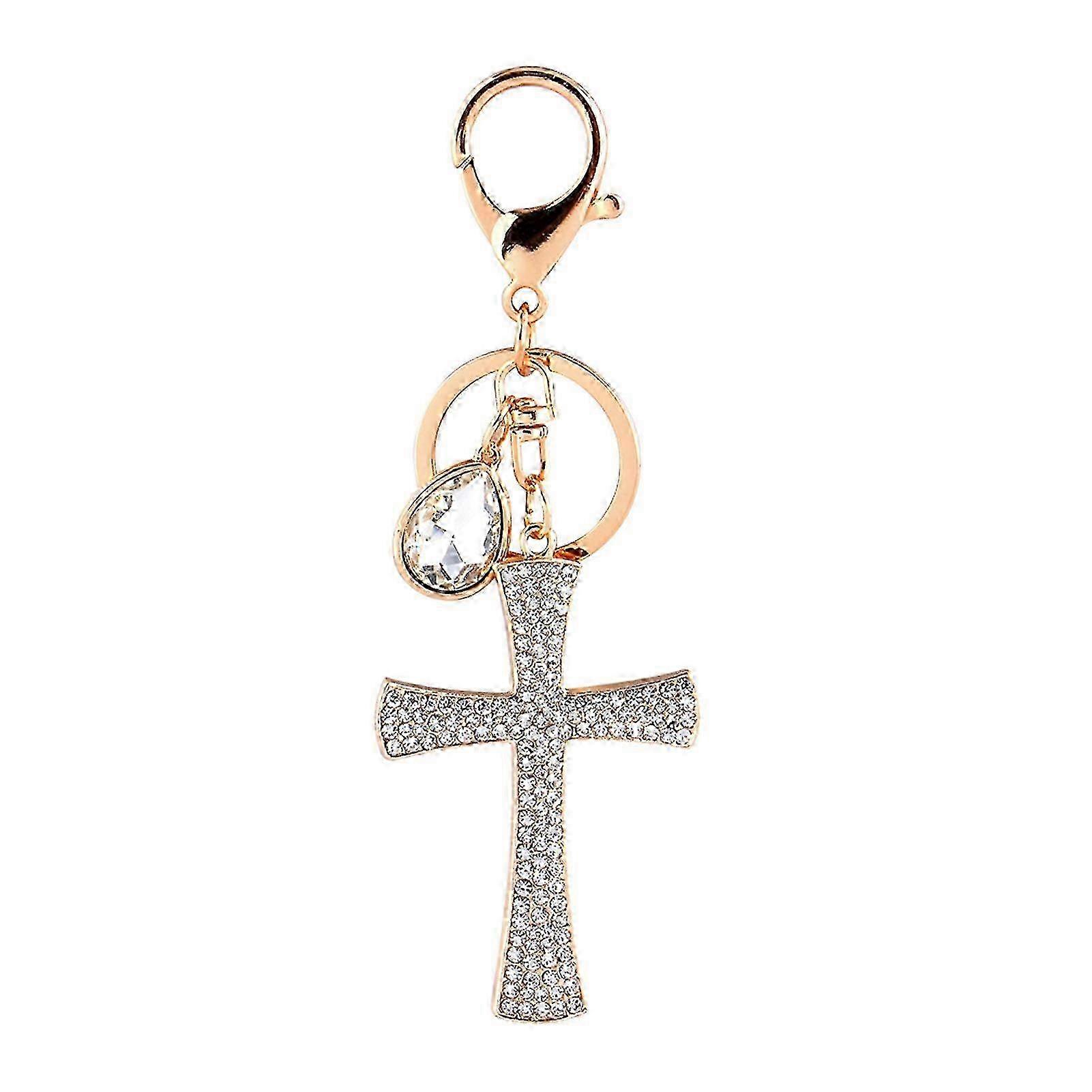 Elegant Cross Crystal Rhinestone Keychain Charm Pendant - 3.5cm Accessory for Purse & Bag Decoration