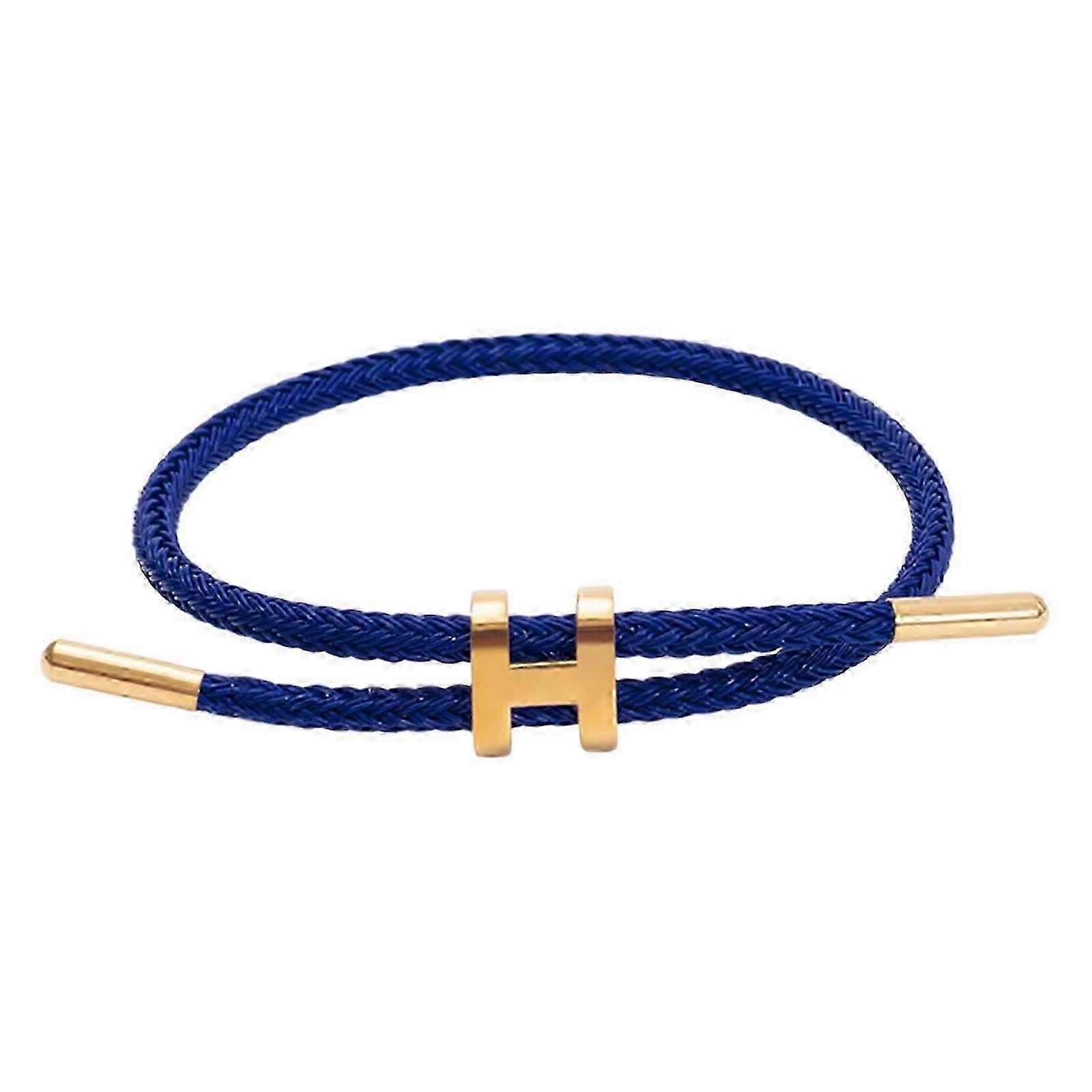 Elegant Gold Plated H Buckle Bracelet with Adjustable Design Sturdy Stainless Steel Wire Wristband for Trendsetters Navy blueNavy blue SZRH A-GB