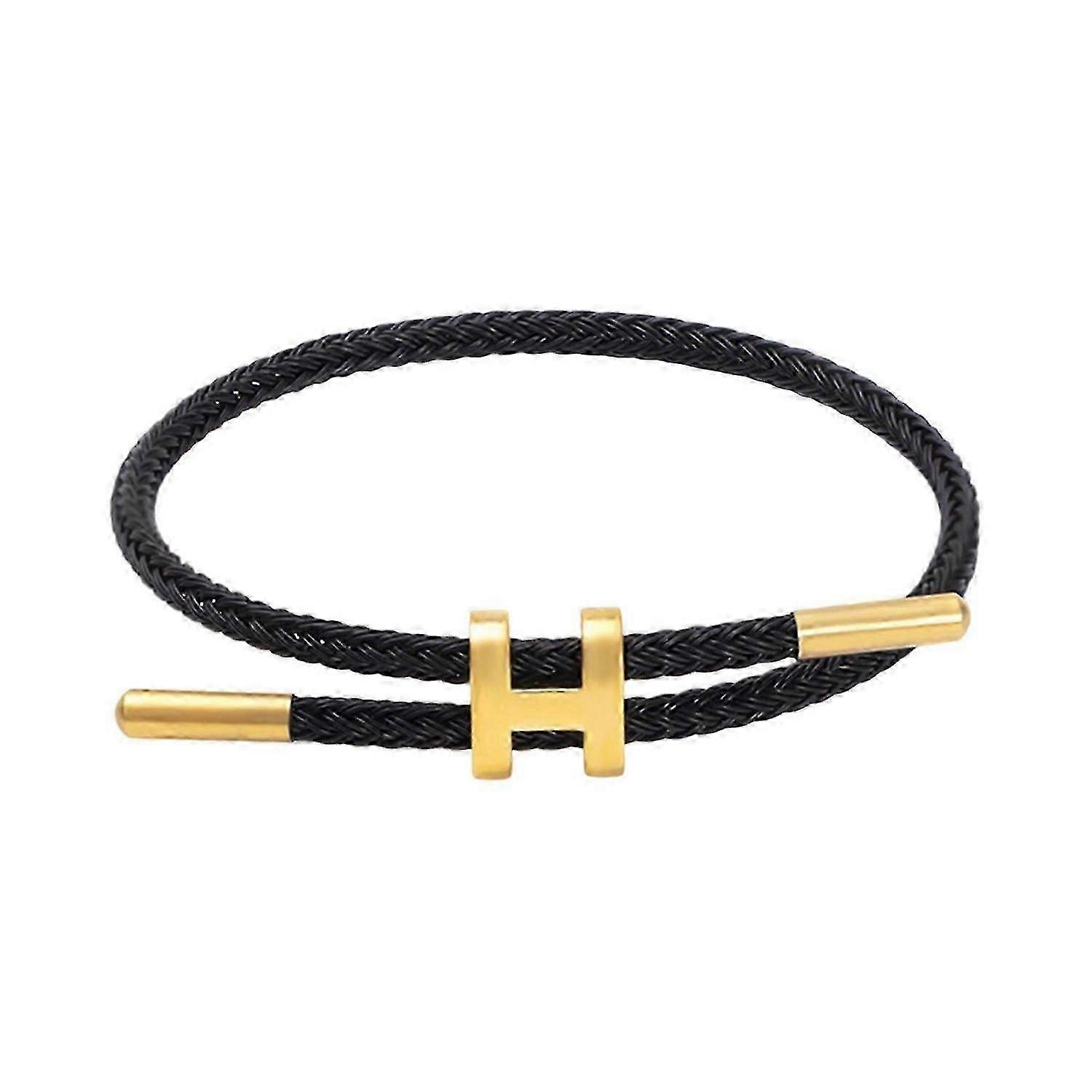 Elegant Gold Plated H Buckle Bracelet With Adjustable Design Sturdy Stainless Steel Wire Wristband For Trendsetters Black -hk628