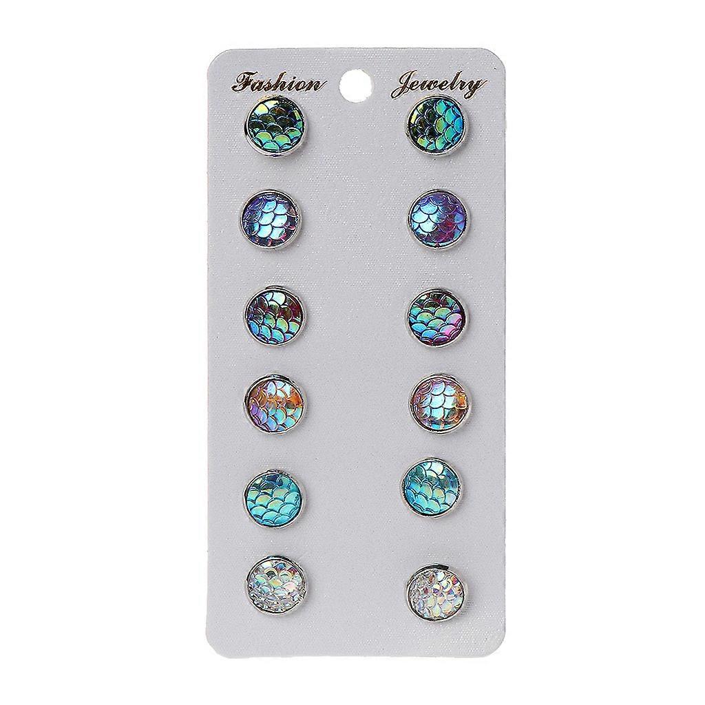 Elegant Stud Earrings 6 Pairs Beauty Fish Scale Round Crystal Stud Earrings Set for Teenagers Children Men Women Unisex