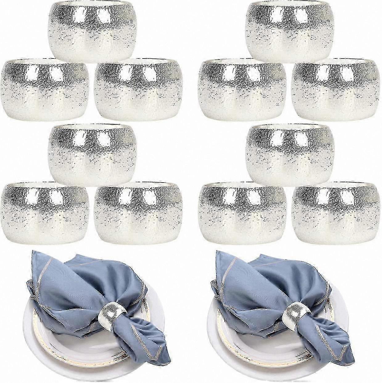 12-Piece Set of Vintage Silver Metal Round Napkin Rings for Elegant Table Settings