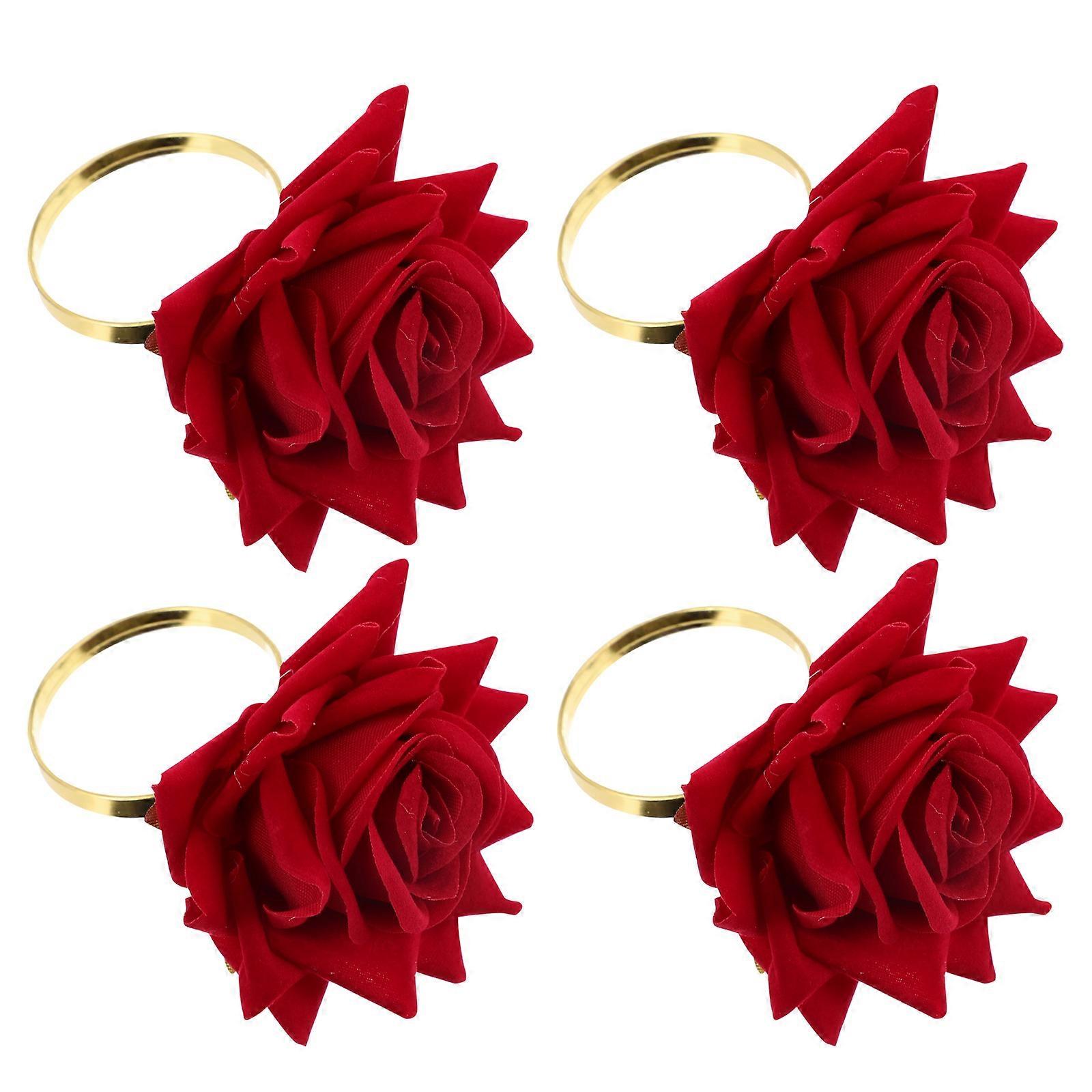 Red Rose Napkin Rings with Lifelike Design for Elegant Table Decoration Plastic and Metal 4pcs