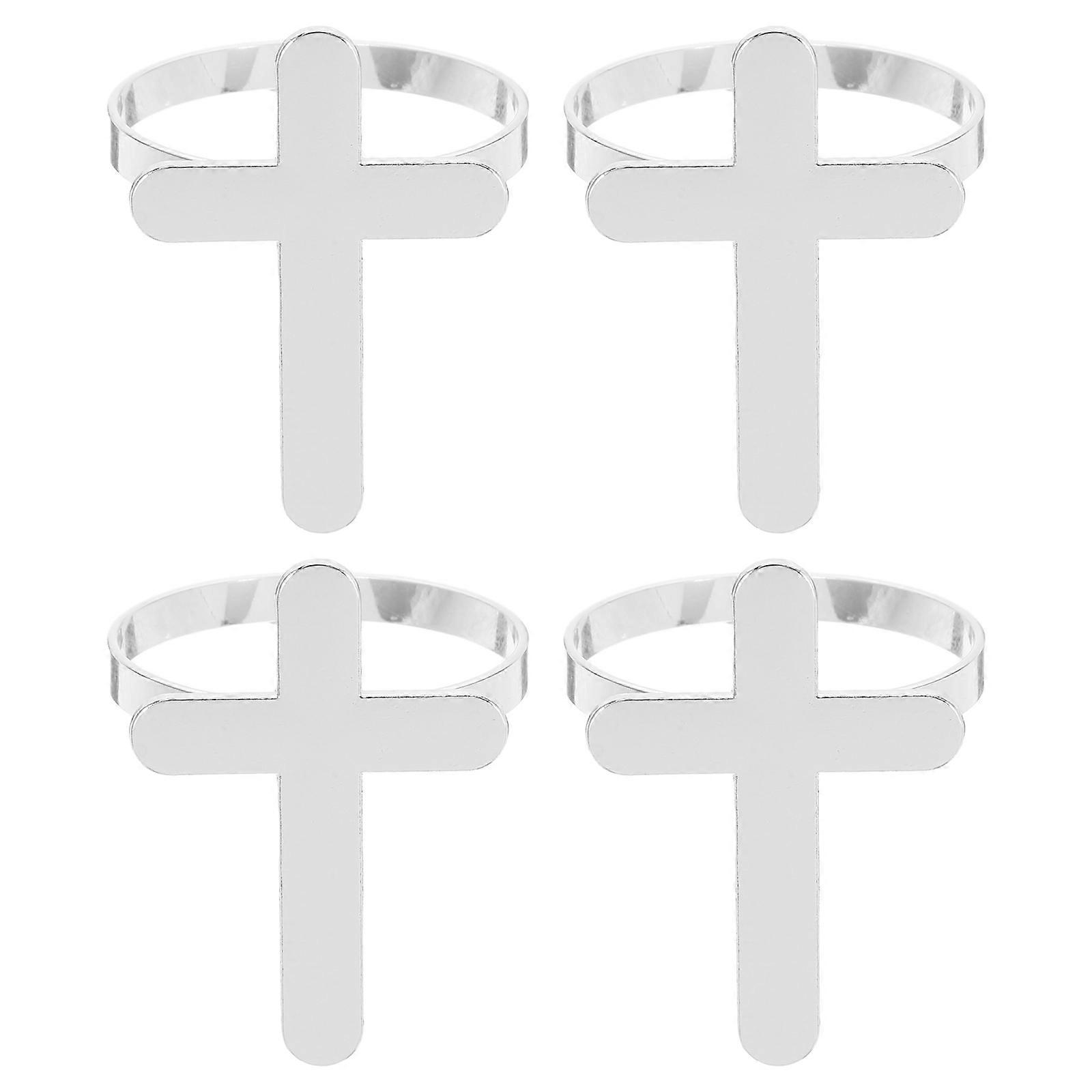 Elegant Napkin Rings Cross Shaped Napkin Buckles Festivals Weddings Hotels Silver 5.00X4.00X4.00CM Prevents Messy Napkins 4Pcs