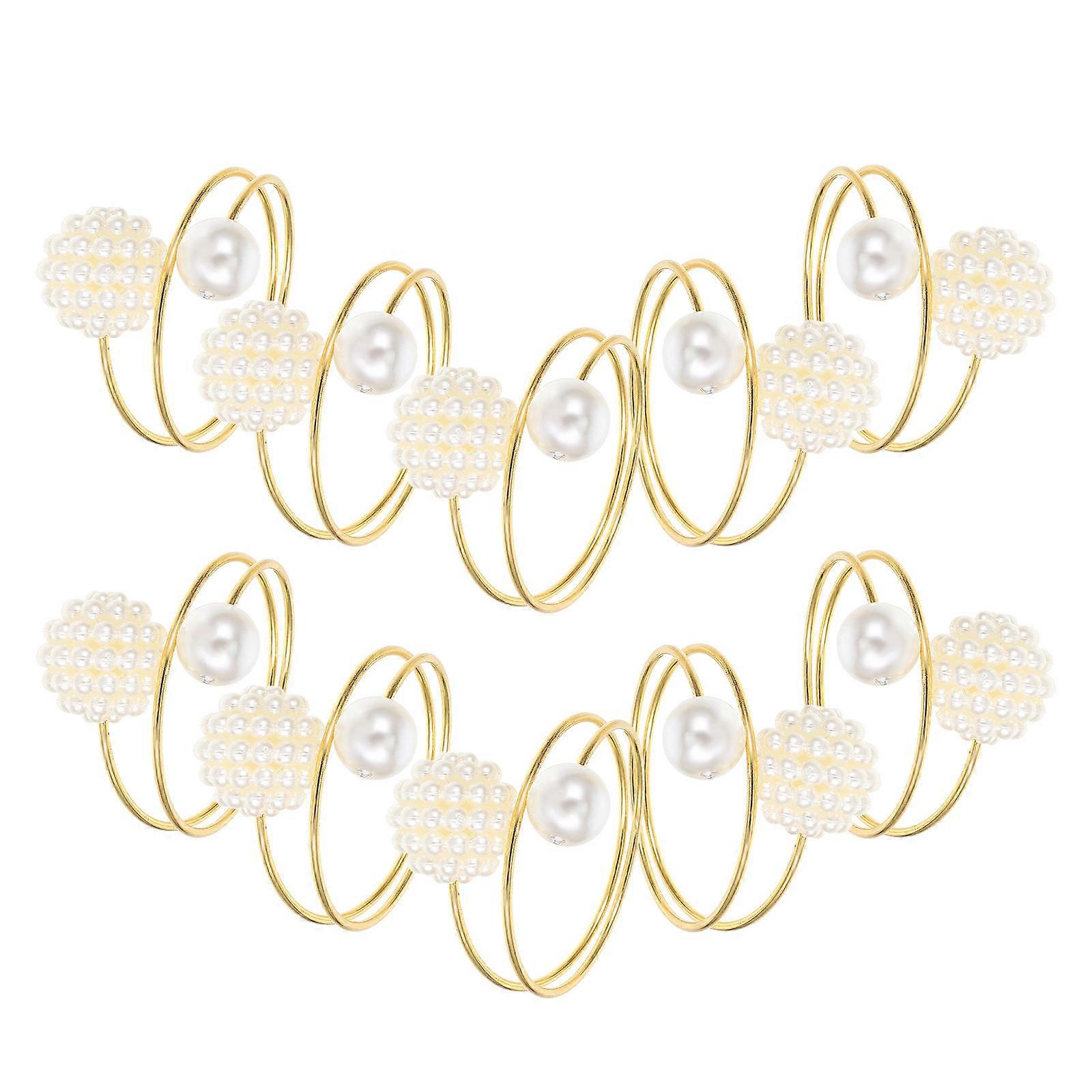 Elegant Napkin Rings Hollow Out Serviette Buckle Everyday Use Imitation Pearl Decoration 4.80X4.20X3.00CM Metal Material 12Pcs