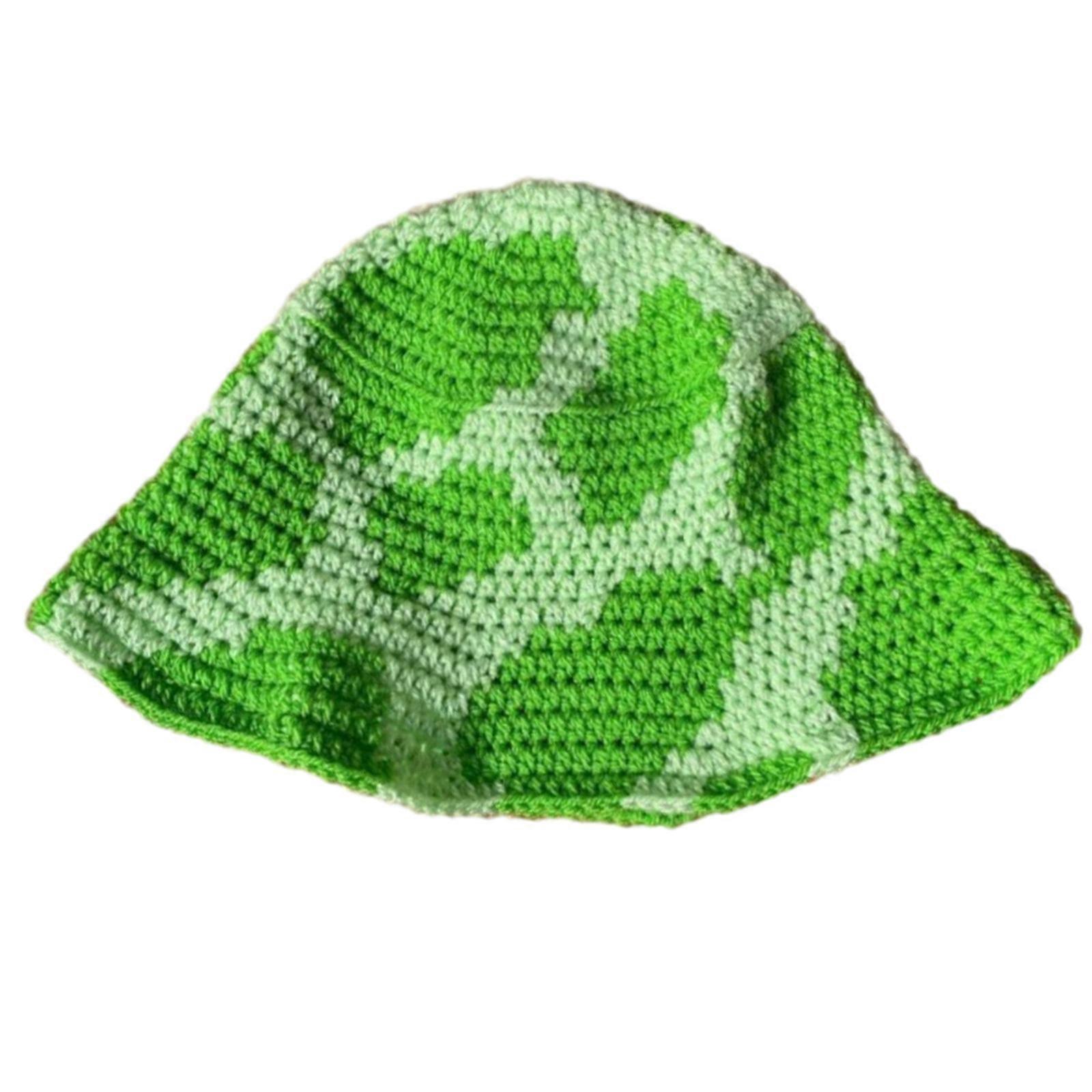 Elegant Bucket Hat Colorful Cow Pattern Crochet Hat Holiday Decors Vacation Hat Western Cloch Style for Schoolgirls Green