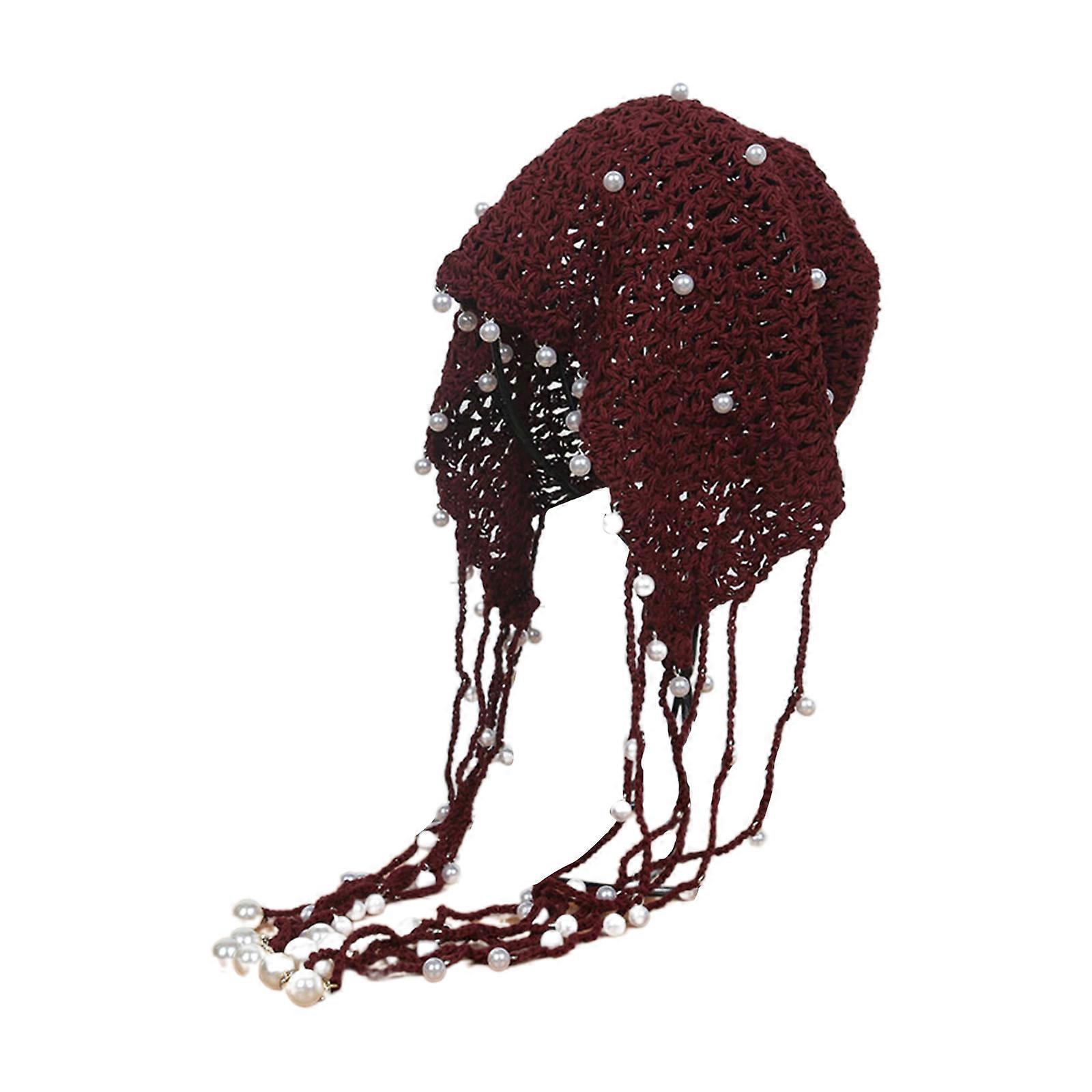 Elegant Pearls Beanie Hat Breathable Hat Y2K Crochet Beanie Hat Holiday Y2K Crochet Hat Encrusted Pearls Burgundy