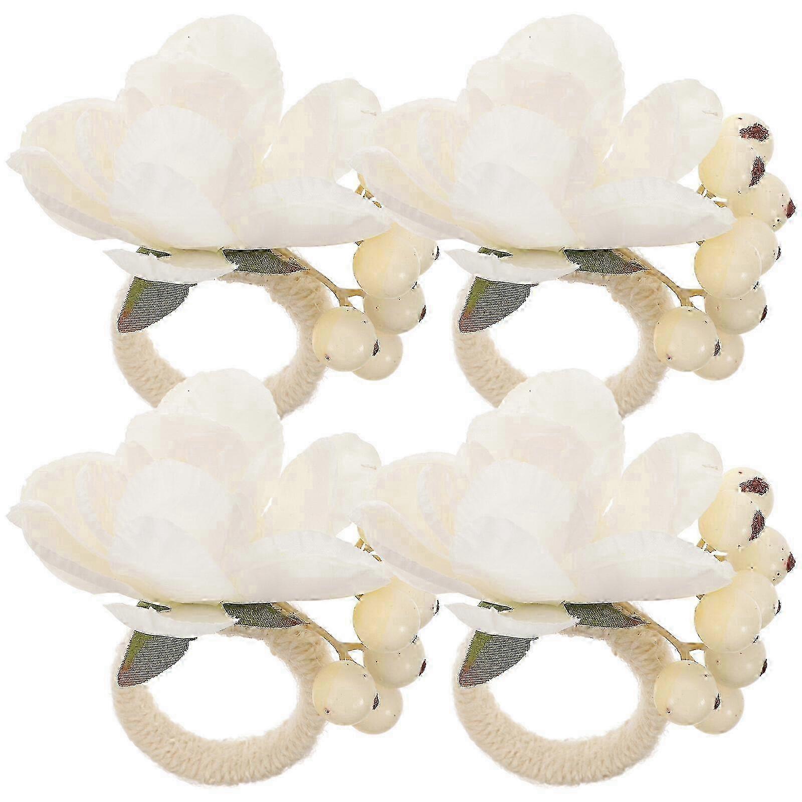 Elegant Fake Flower Napkin Rings - Set of 4 White Serviette Holders, Decorative Table Accessories (9x9x5cm) for Weddings & Events