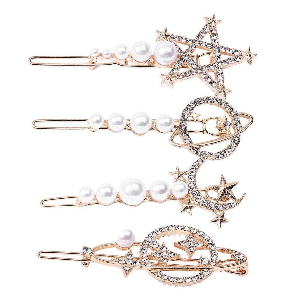 Elegant Hairpins Metal Rhinestone Girl Hair Barrettes Delicate Design For Weddings 4Pcs
