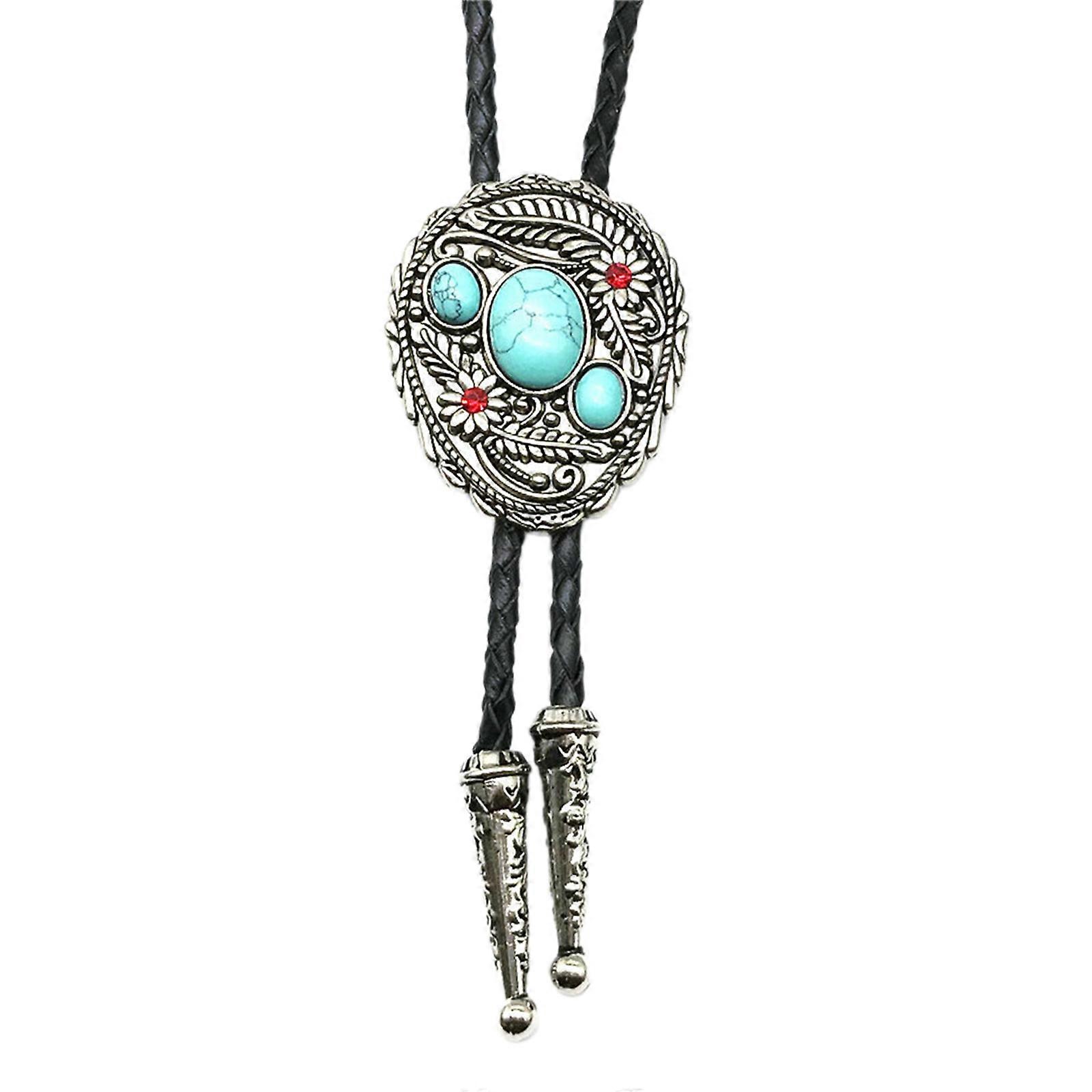 Elegant Bolo Tie with Flower Turquoise Pendant Carved Necktie Western Necklace Cool Bolo Tie Western Cowboy Costume Sky Blue