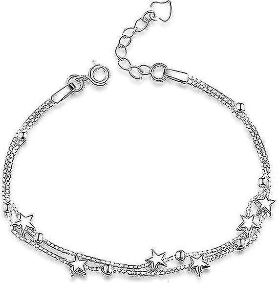 Elegant Mini Stars Beaded Charm Bracelet 925 Sterling Silver Box Chain Layered Bracelet,adjustable Friendship Link Bracelet Jewelry For Women