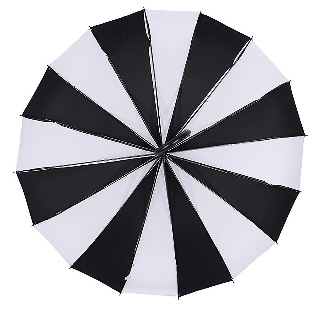 Elegant Long Handle Windproof Umbrella Sun Rain Use 16 Ribs Black White Design Pagoda Type New