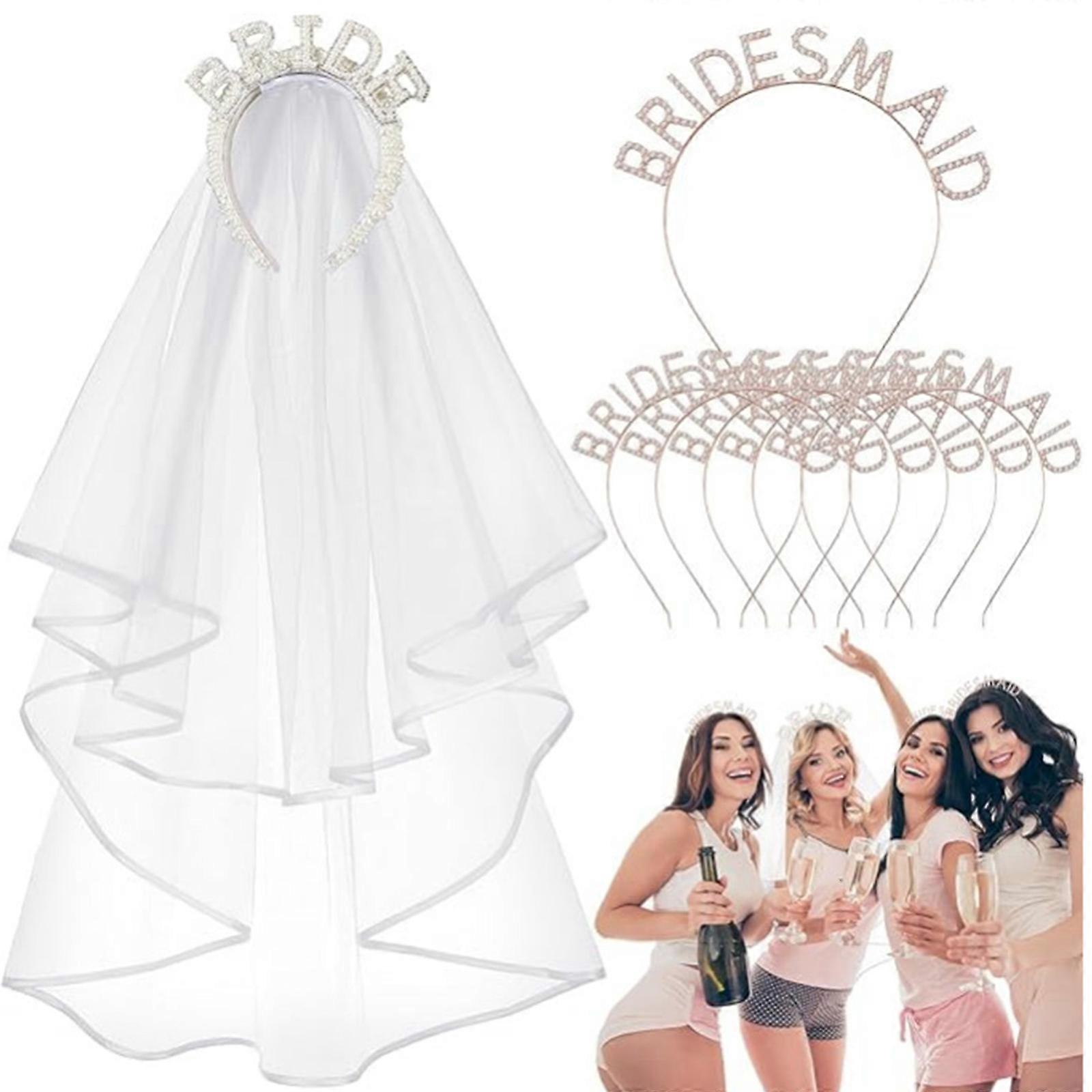 Elegant Long Veil Bride Hairband with Pearl Decors Bridesmaids Shinning Baroques Hairband for Girl Wedding Party Wear White