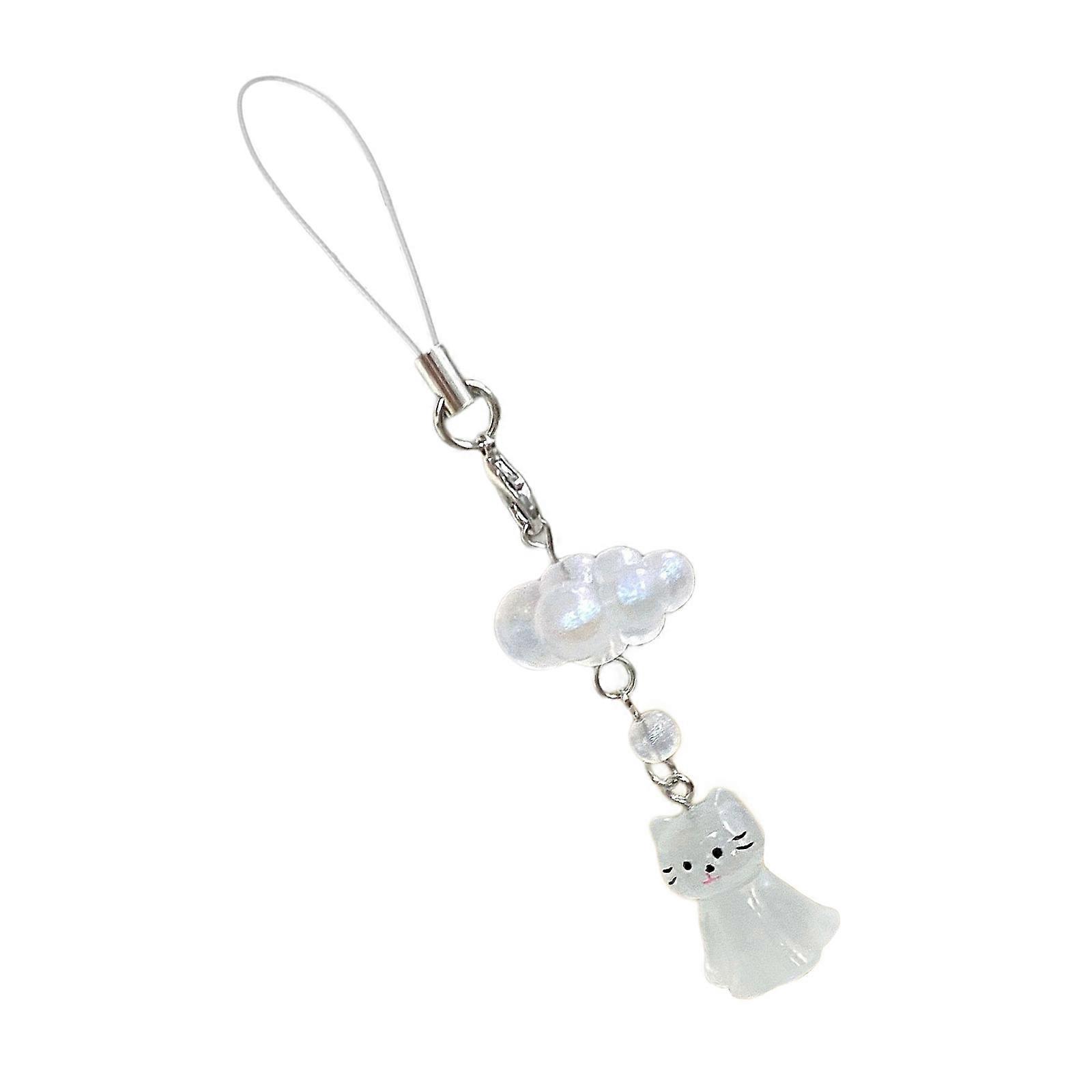 Elegant Cat and Cloud Mobile Charm Keychain Suitable for Bags USB Drives and Keys Perfect for Daily and Travel Use White