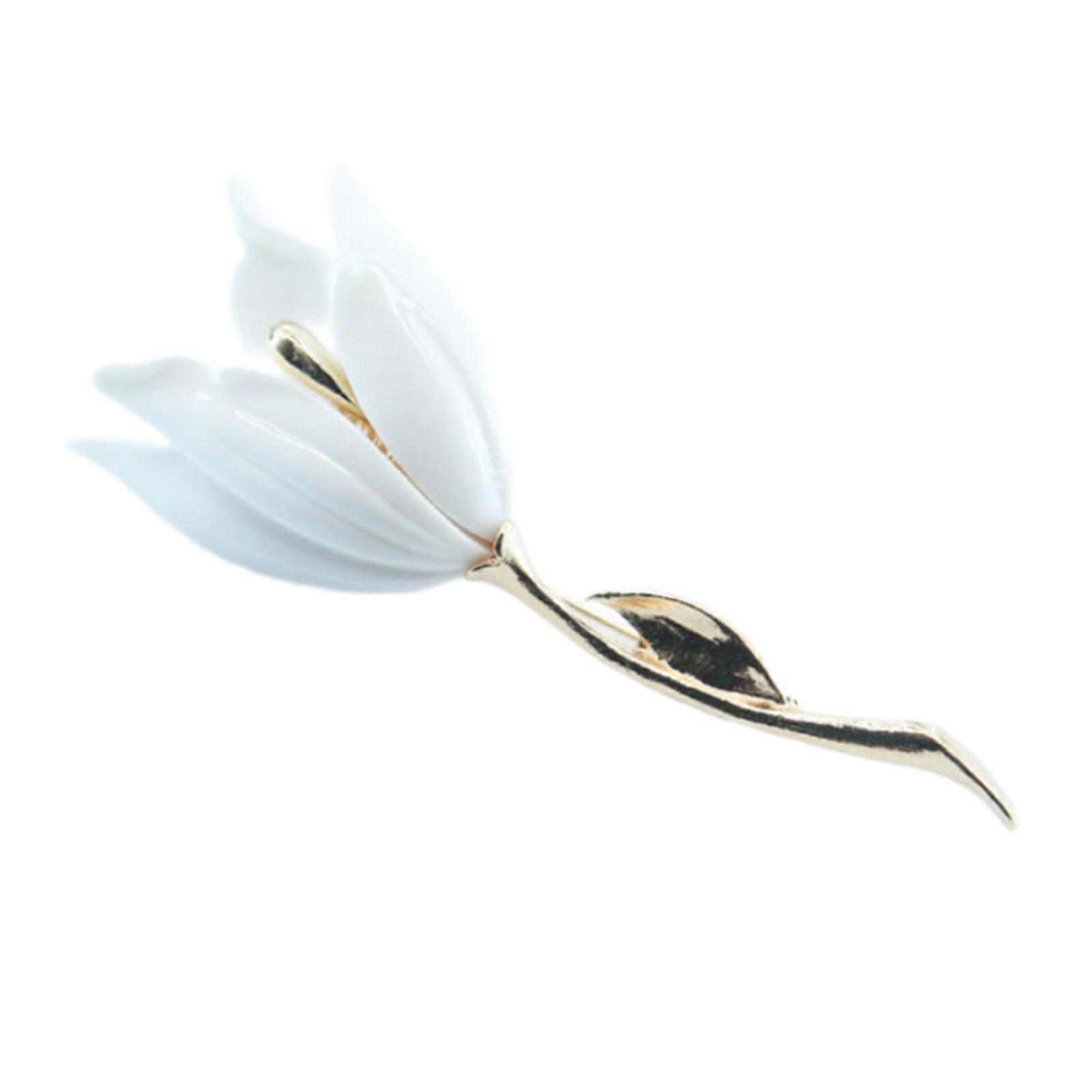 Elegant White Tulips Brooch Fashion Magnolias Flower Pin for Women Coat Backpack Hat Badge Jewelry Accessories