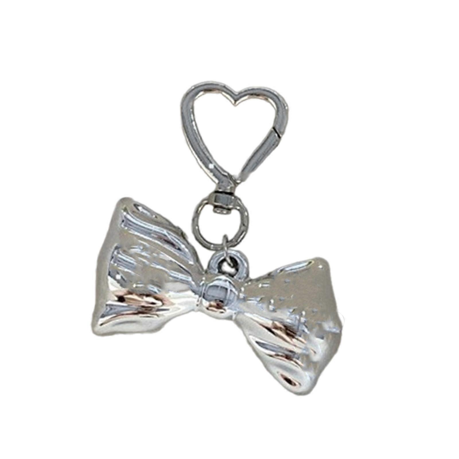 Elegant Bows-Tie Keychain Bowknot Charm Butterfly Knot Keyring Detachable Phone Lanyard Ornament for Fashionable Women Silver