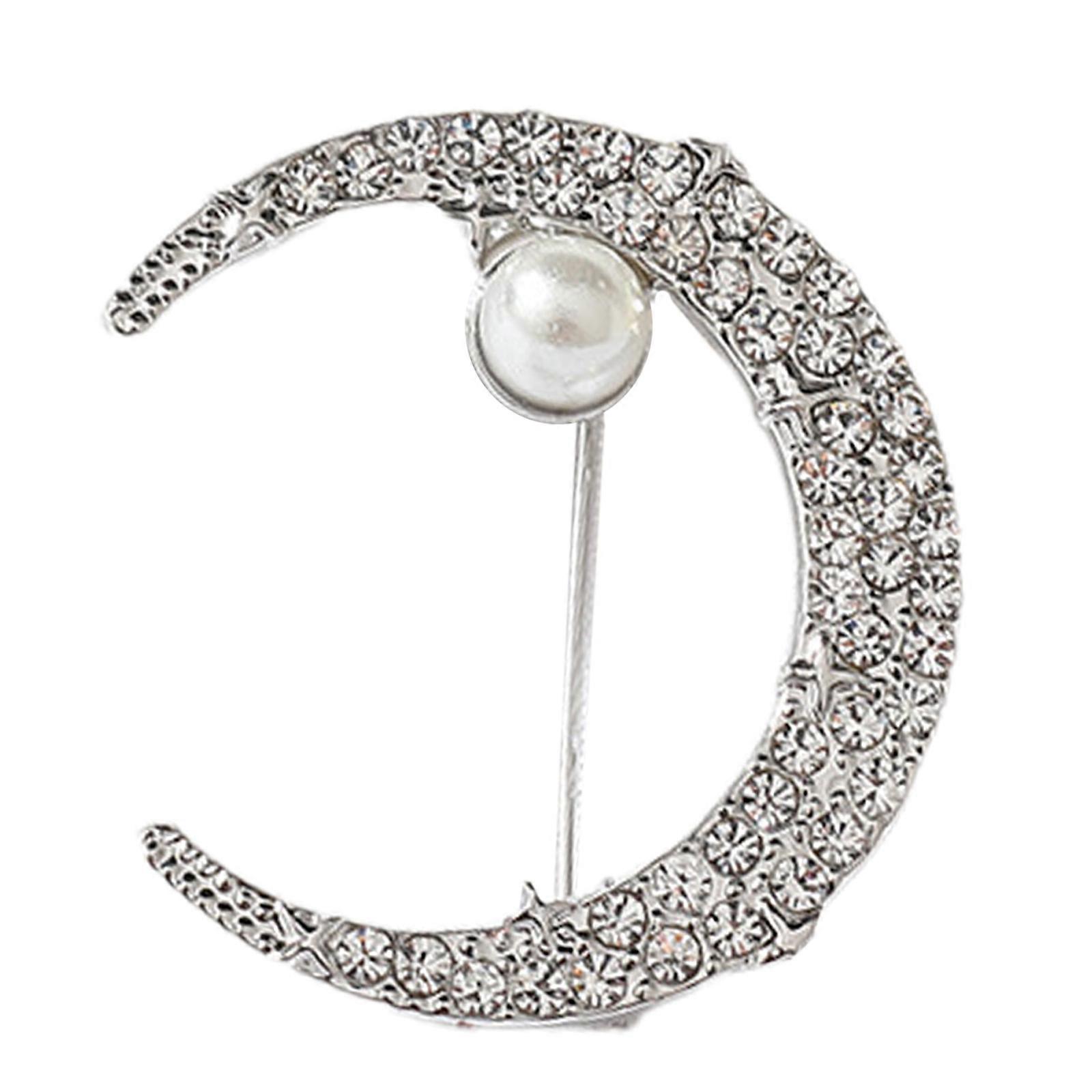Elegant Lapel Pins Romantic Love Badges Halloween Brooches Peacock Moon Lapel Pins Brooches for Lover Couple Presents Silver moon