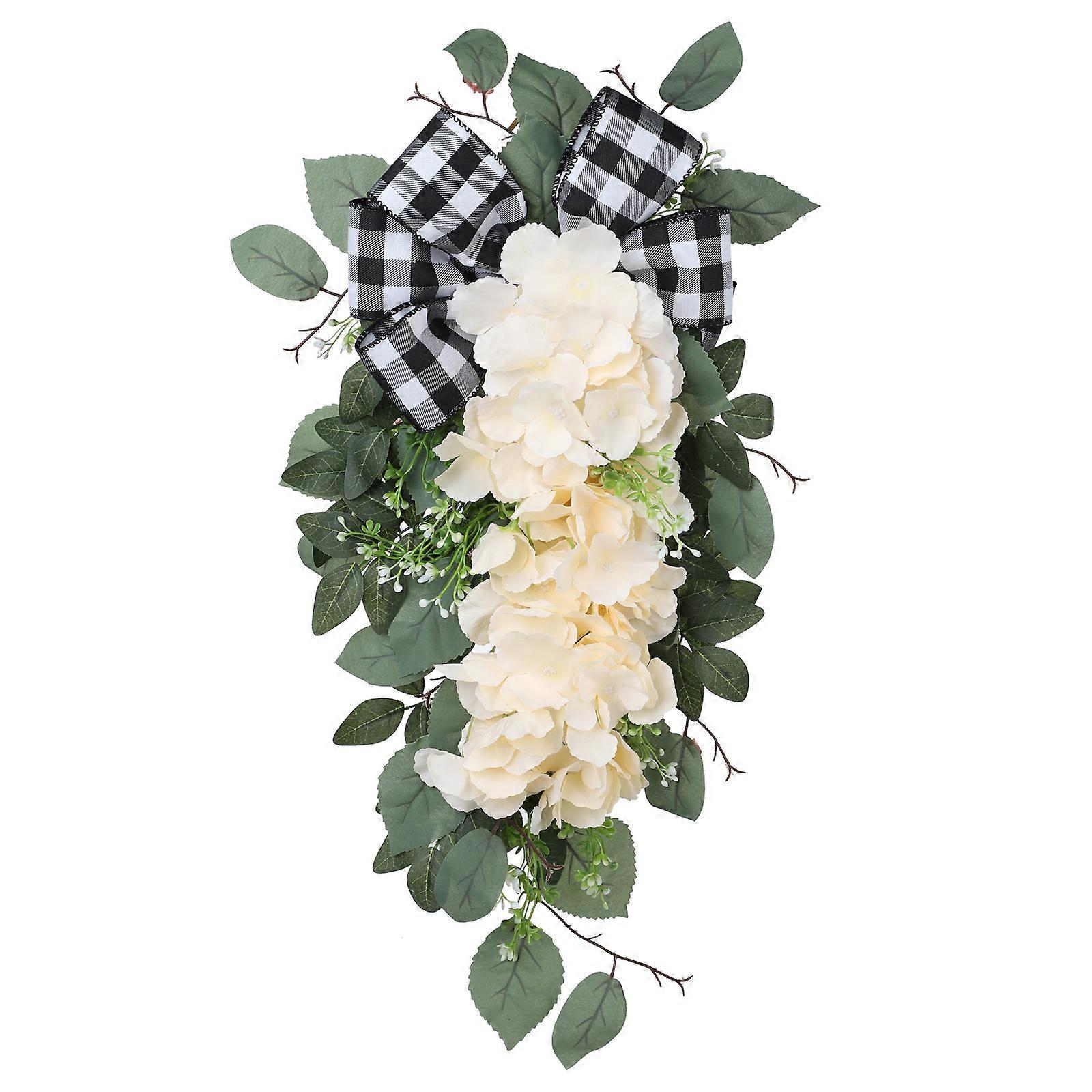 Elegant Farmhouse Artificial Wreath Decor, 60 X 30Cm White EcoFriendly Rattan + Silk Flowers for IndoorOutdoor Decorative Wreath