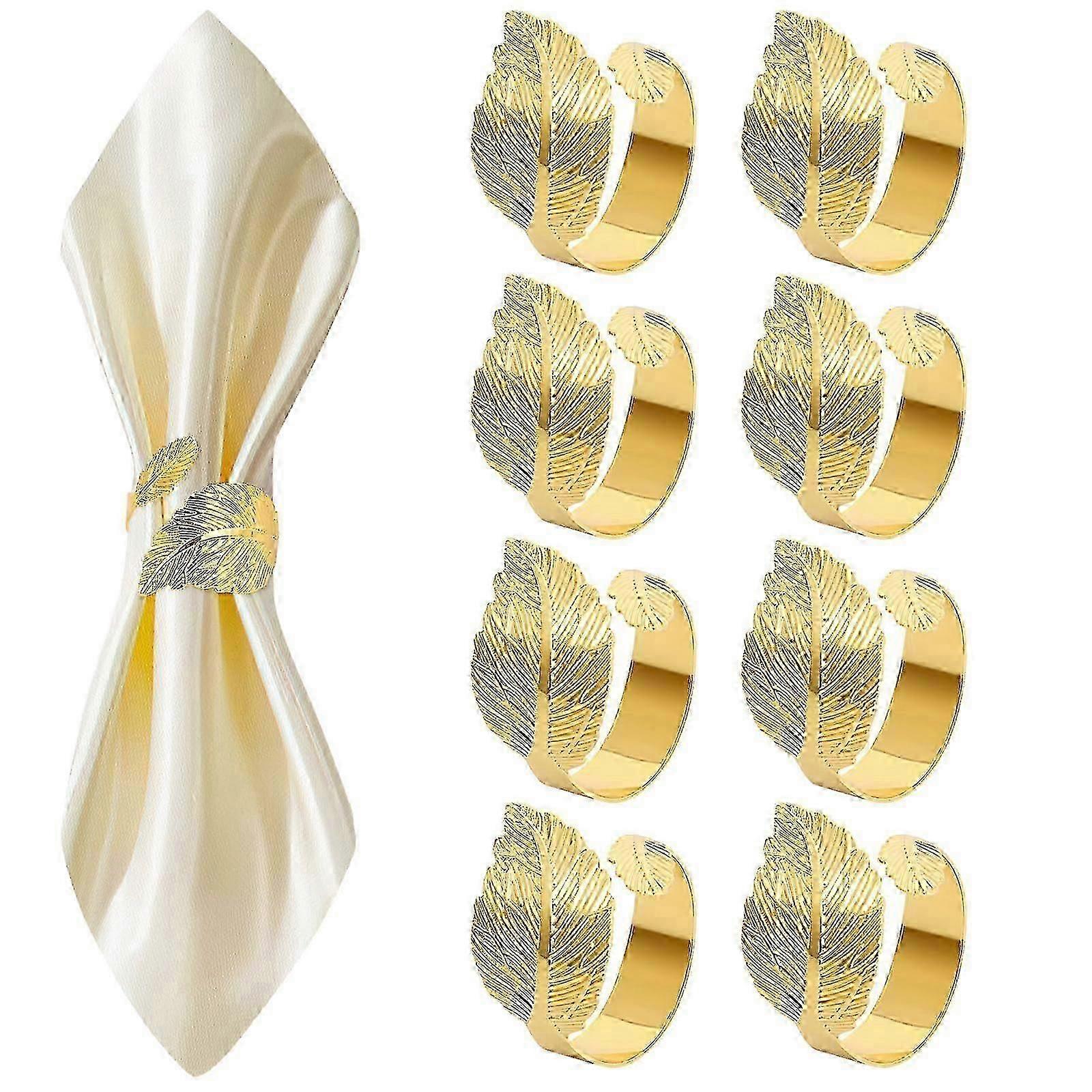 Elegant Gold Leaf Napkin Rings - Set of 8 for Wedding & Easter Table Decor